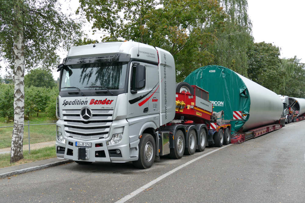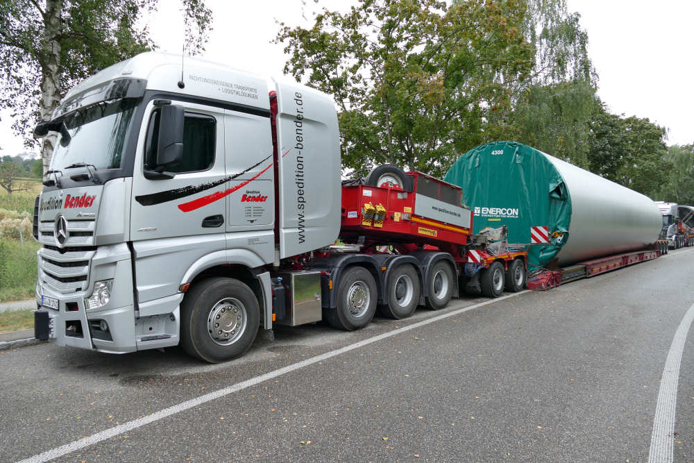 MB 4163 SLT mit Faymonville 2/4 Tieflader und Enercon WEA Turmsektion