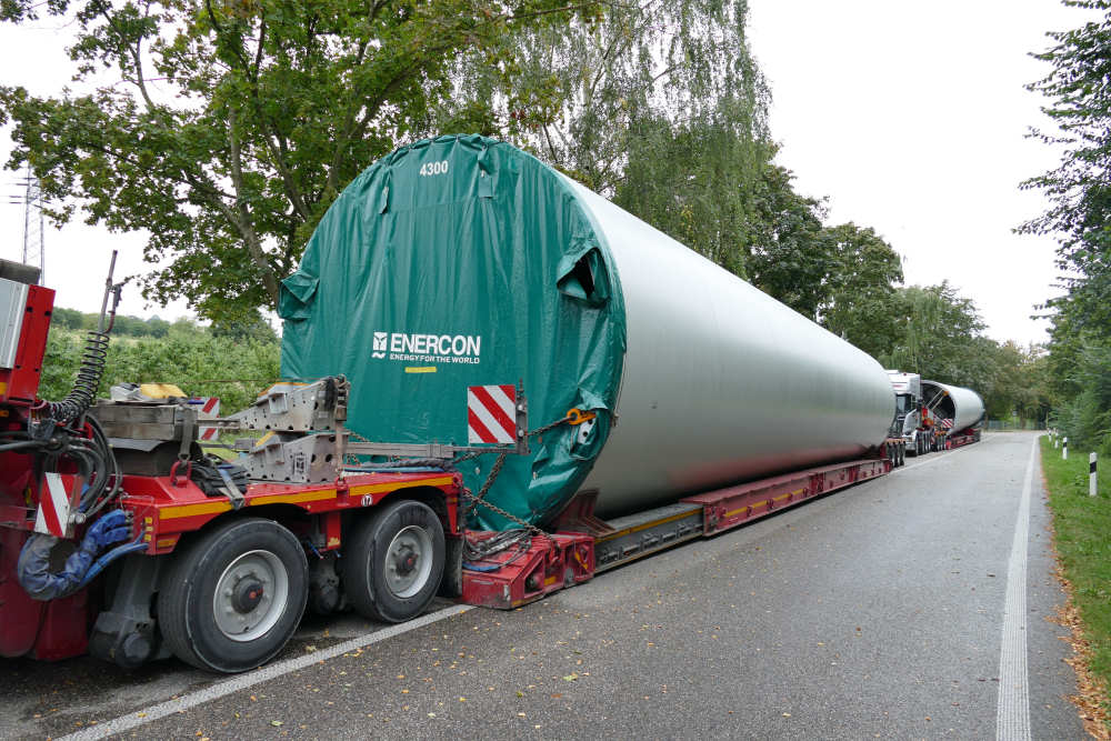 Im September konnte ich zwei Transporte mit Sektionen für die erste Anlage auf einem Parkplat an der A 98 fotografieren.