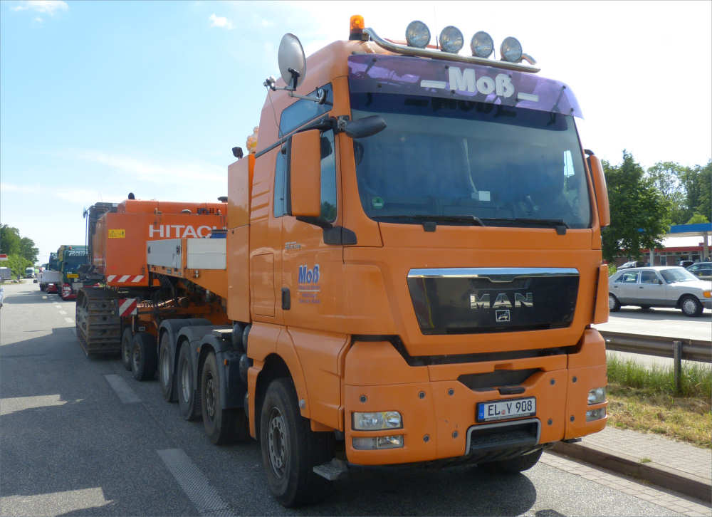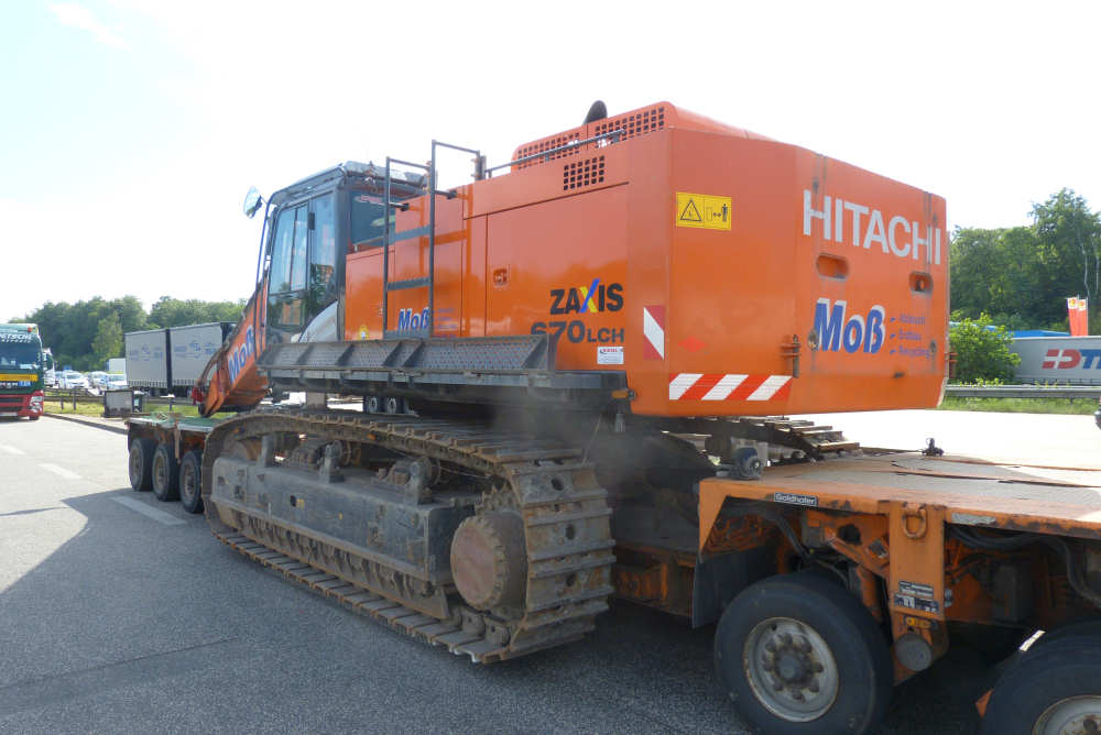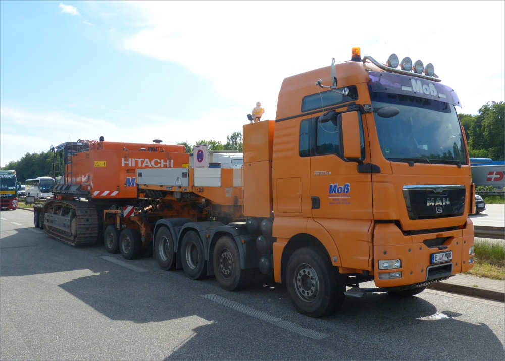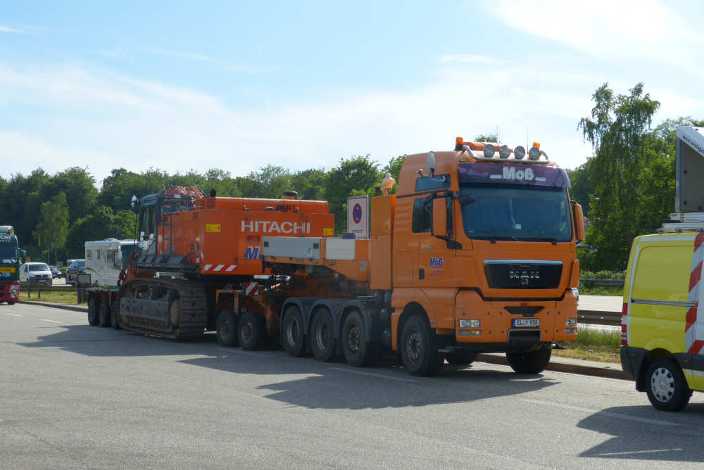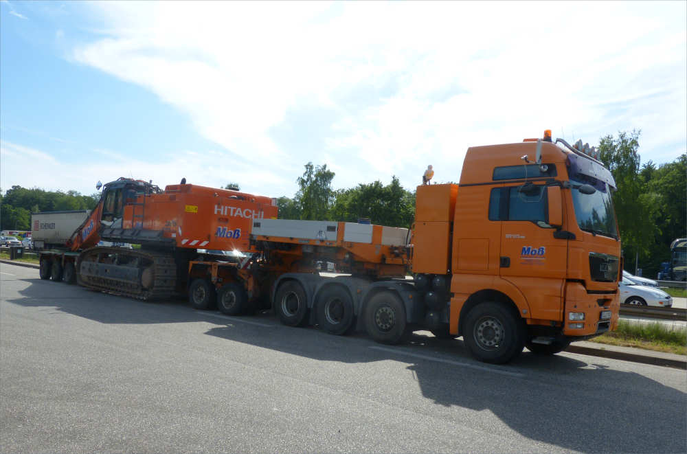 MAN 33.540 TGX mit Goldhofer 2/4 Tieflader und Hitachi Zaxis 670 Bagger