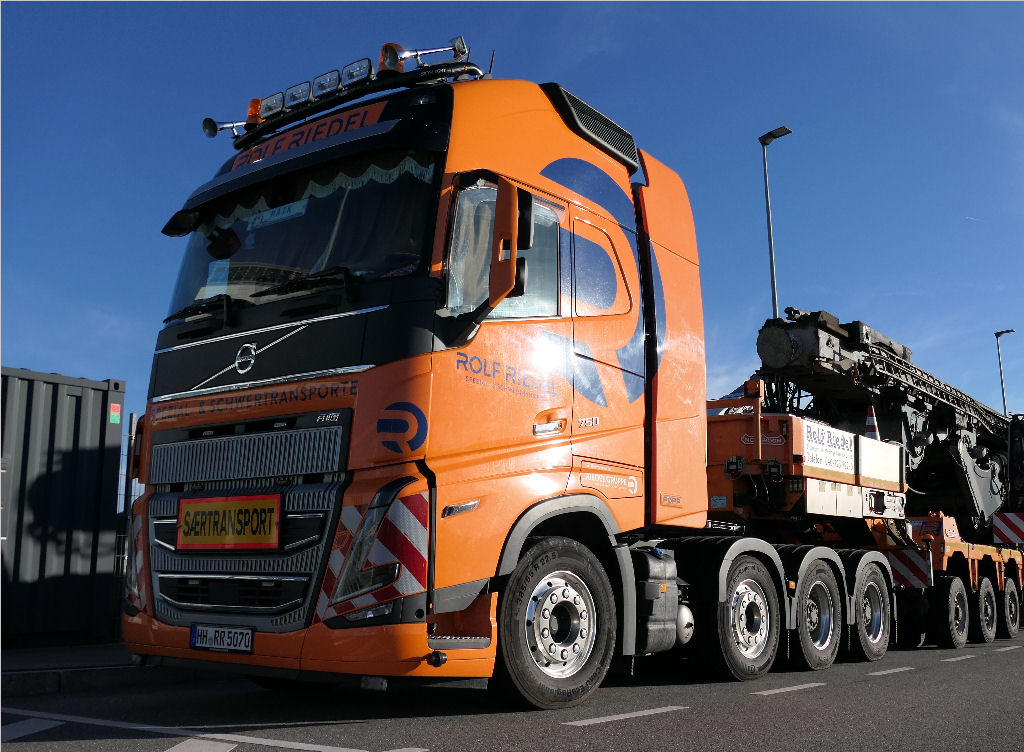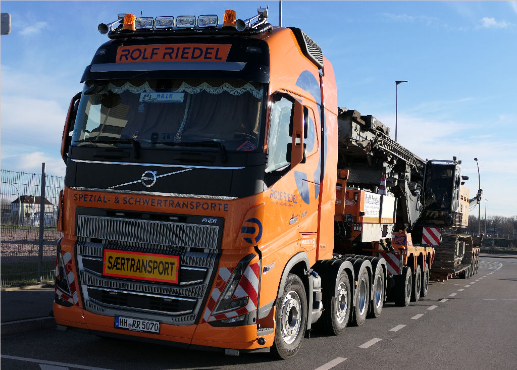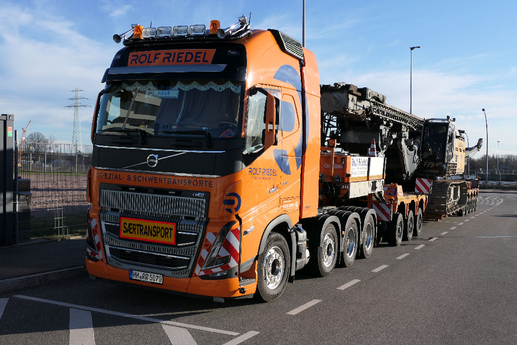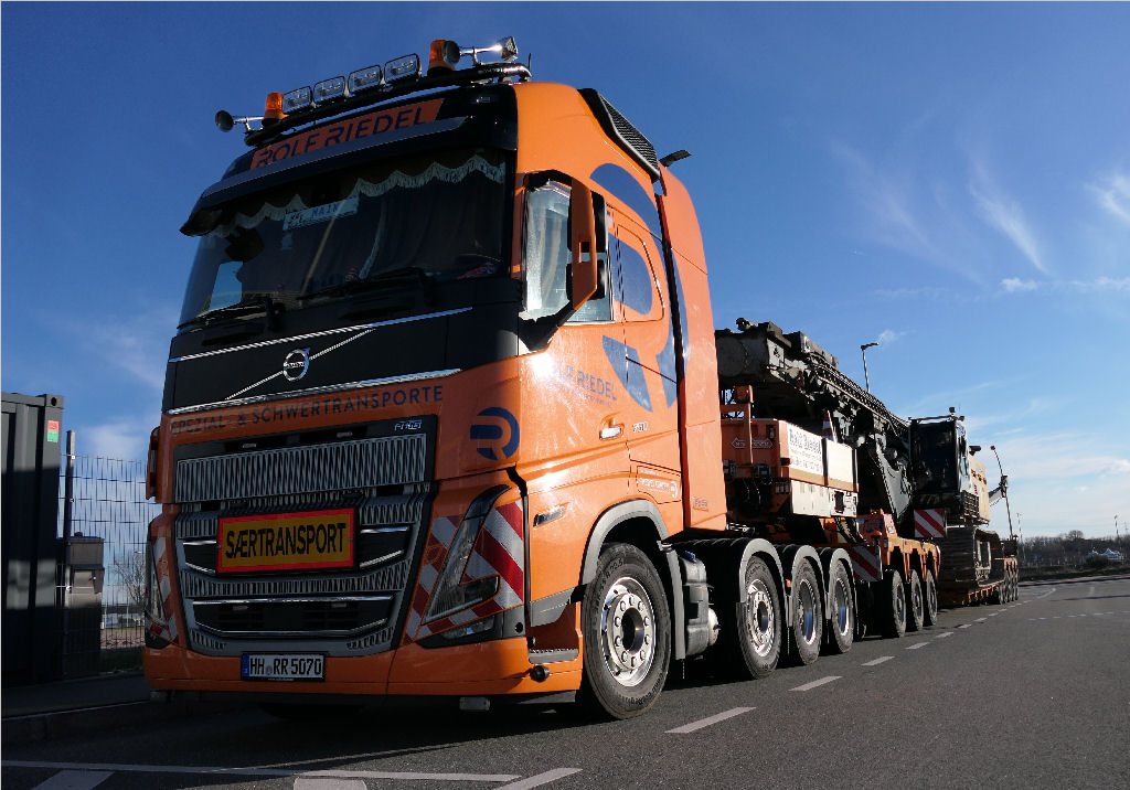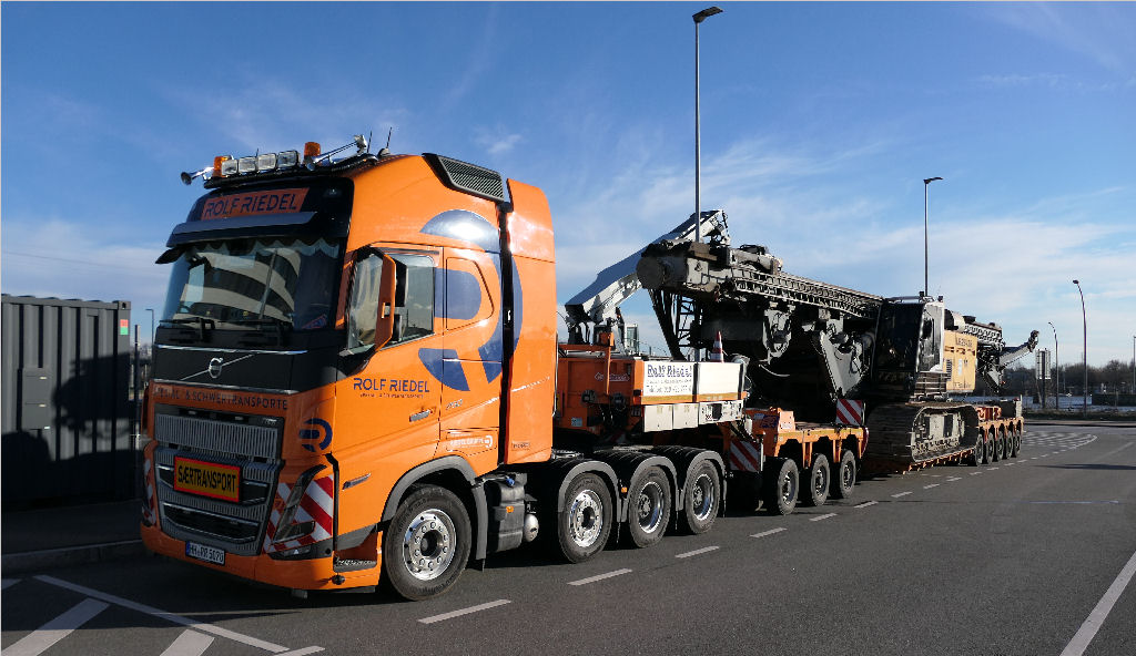 Hierfür setzte Rolf Riedel einen der Volvo FH 05 750 8x4 mit Nooteboom 3-5 Euro ICP Tieflader ein.