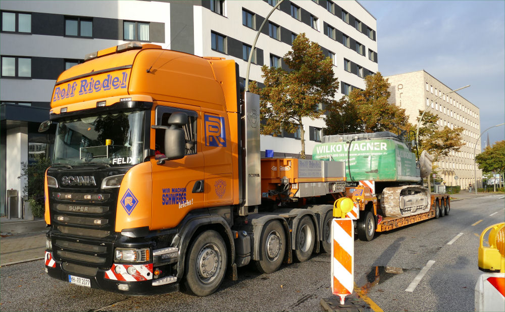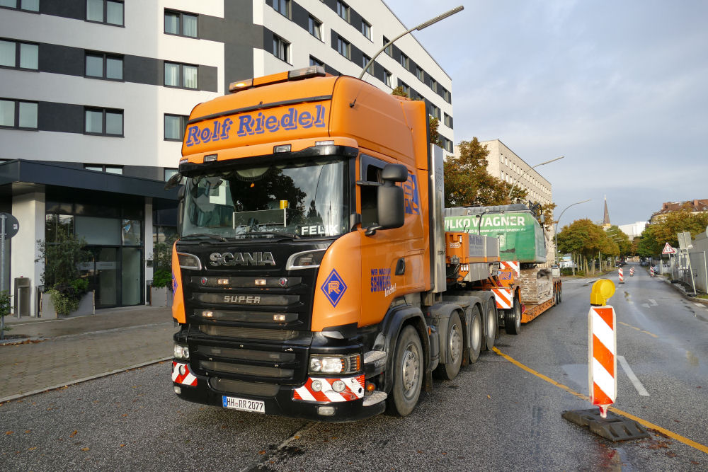 Für den Transport setzte Rolf Riedel die Scania R 500 8x4 mit einem Nooteboom