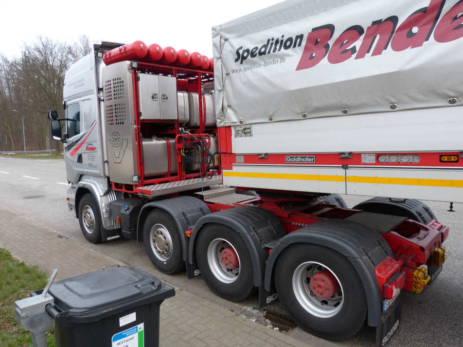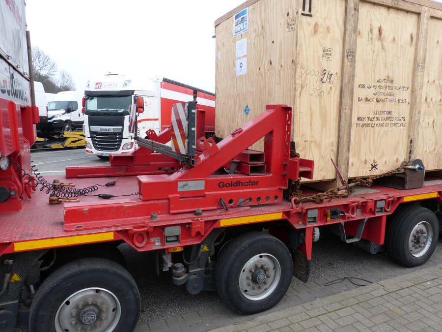Die Transportkombination bestand aus Scania R 580 8x4 und Goldhofer S TZ-P10 (2+8) Tieflader