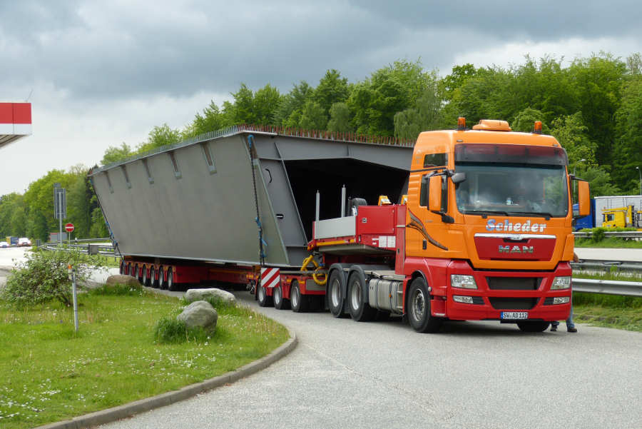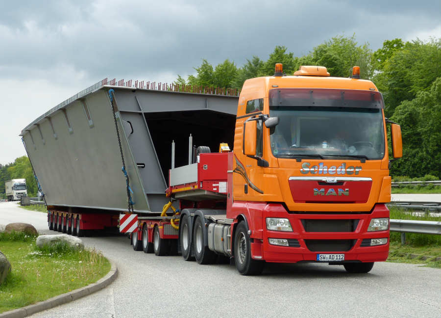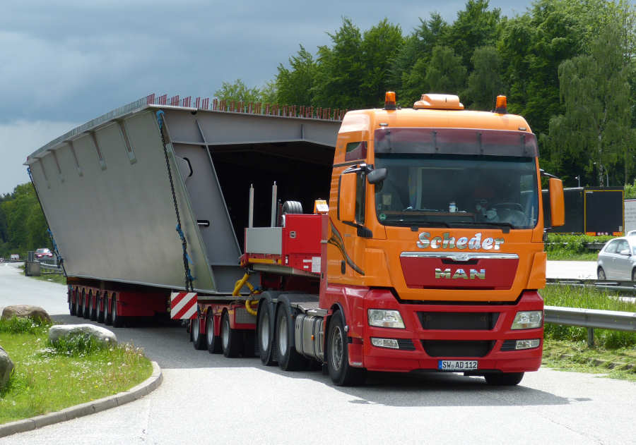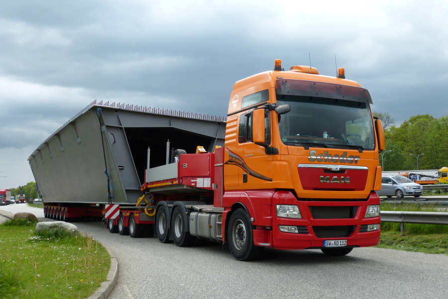 MAN 33.540 TGX 6x4 mit Doll Panther 3/7 Semitieflader und Brückenteil
