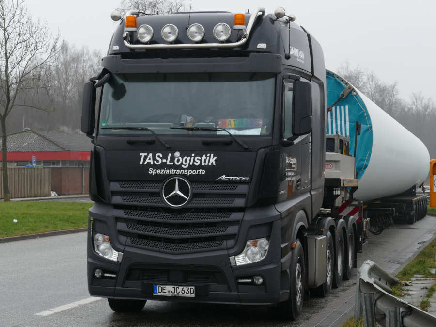 MB Actros 4163 SLT mit Nooteboom MCO-PX-97-06V und WEA Turmteiltransport