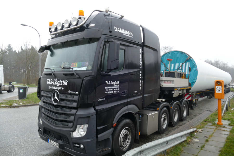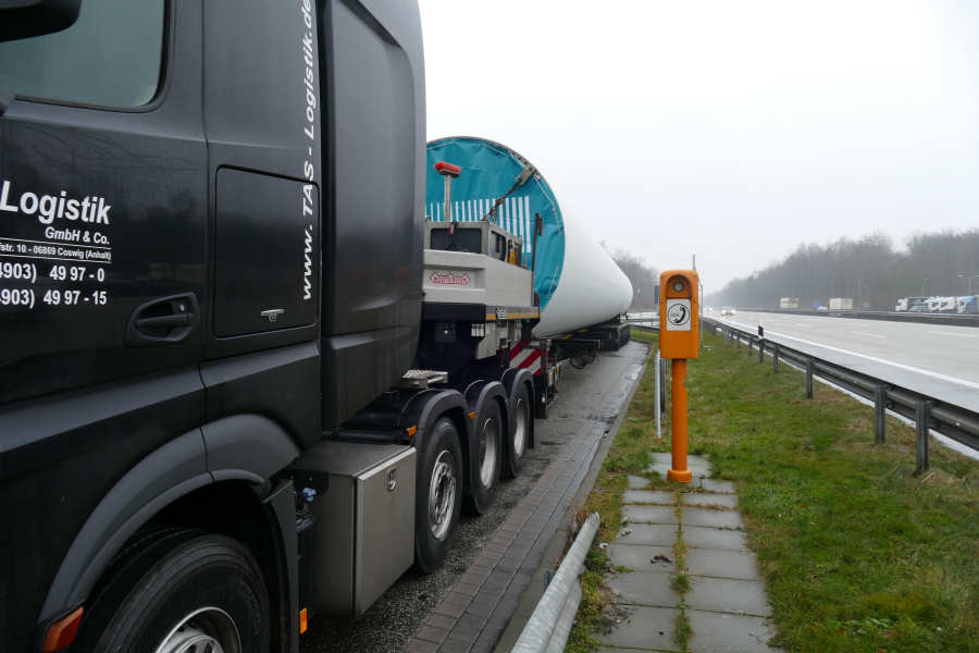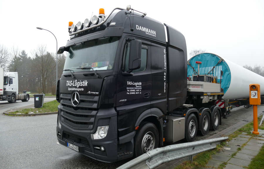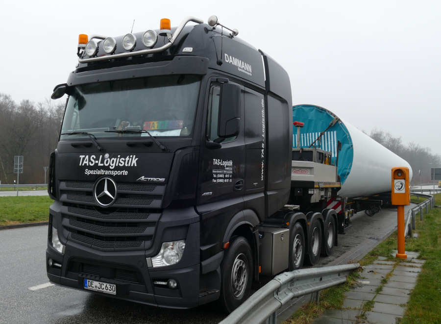 beladen mit einem Turmteil für eine Windenergieanlage.
