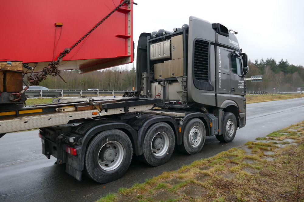 MB Actros 4163 SLT Titan mit Nachläuferkombination und Containerbrückenteil