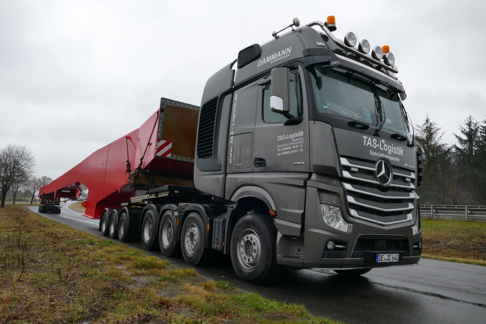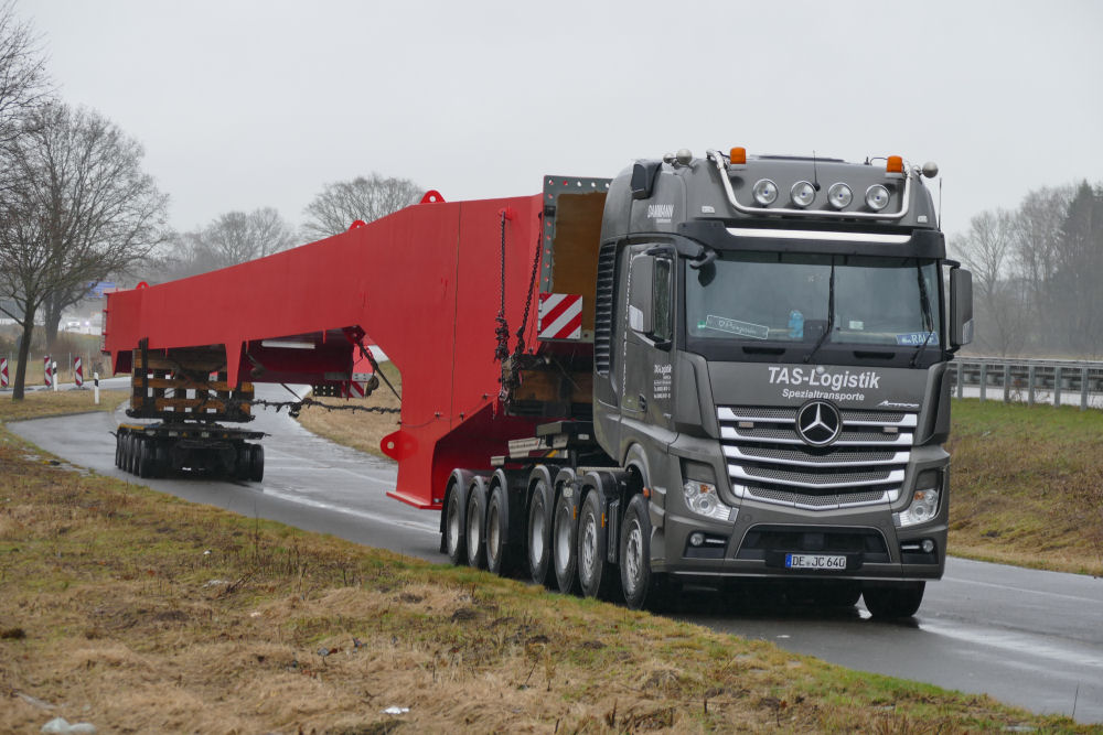MB Actros 4163 SLT Titan mit Nachläuferkombination und Containerbrückenteil