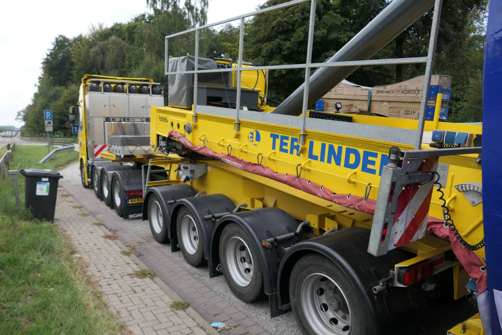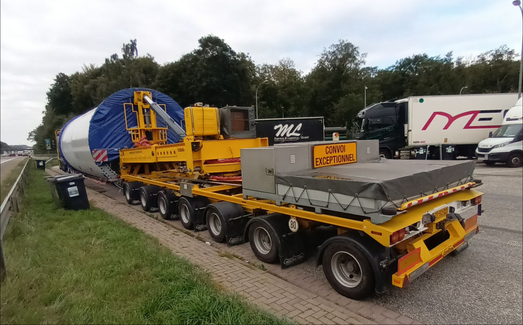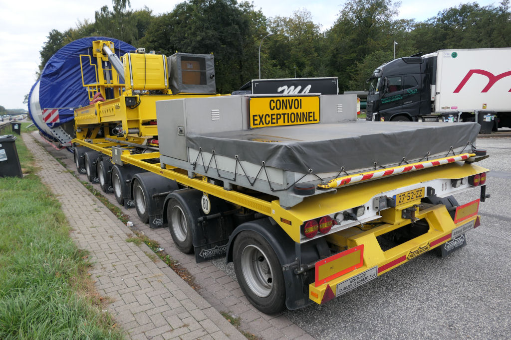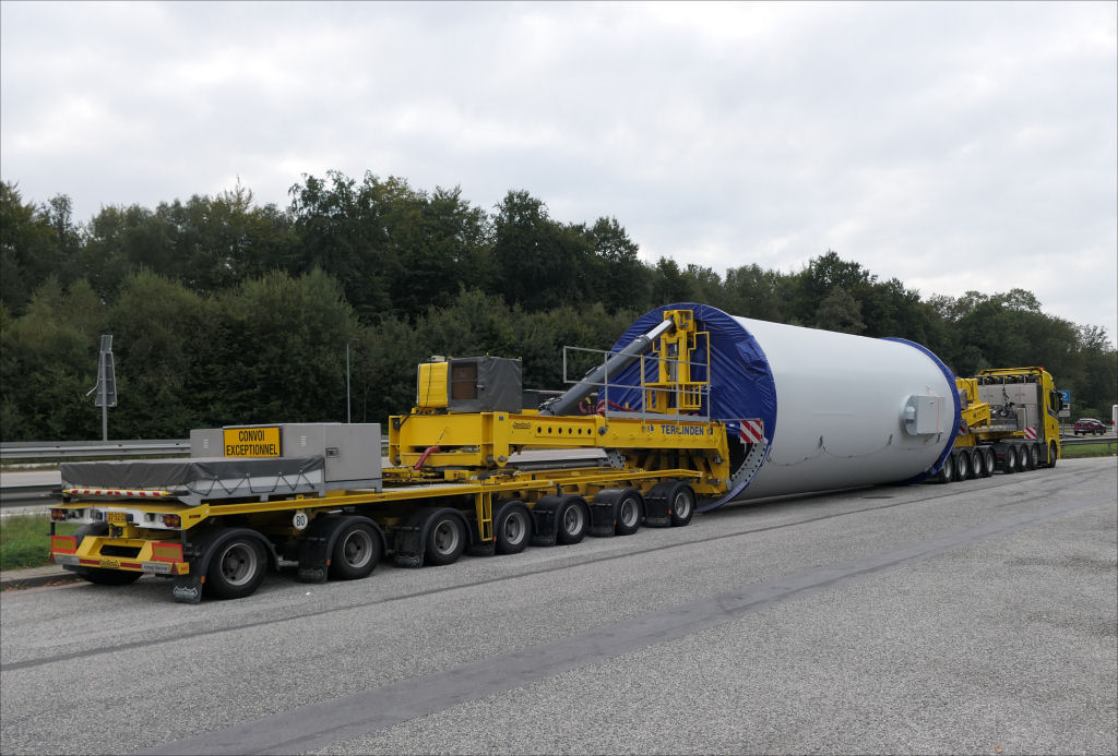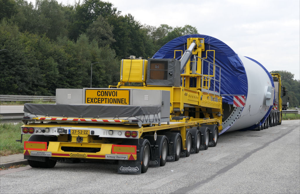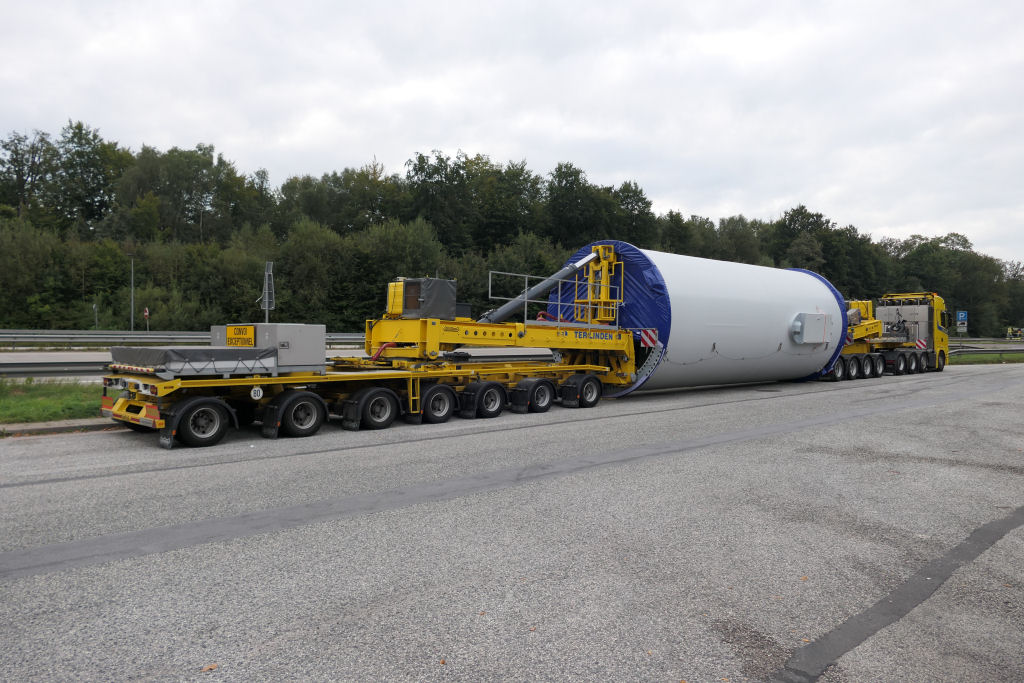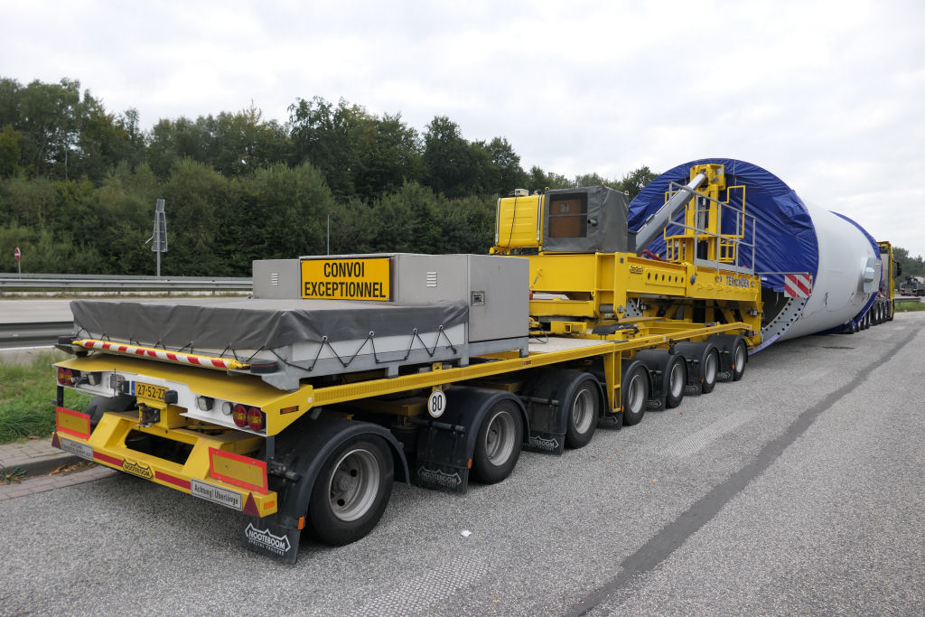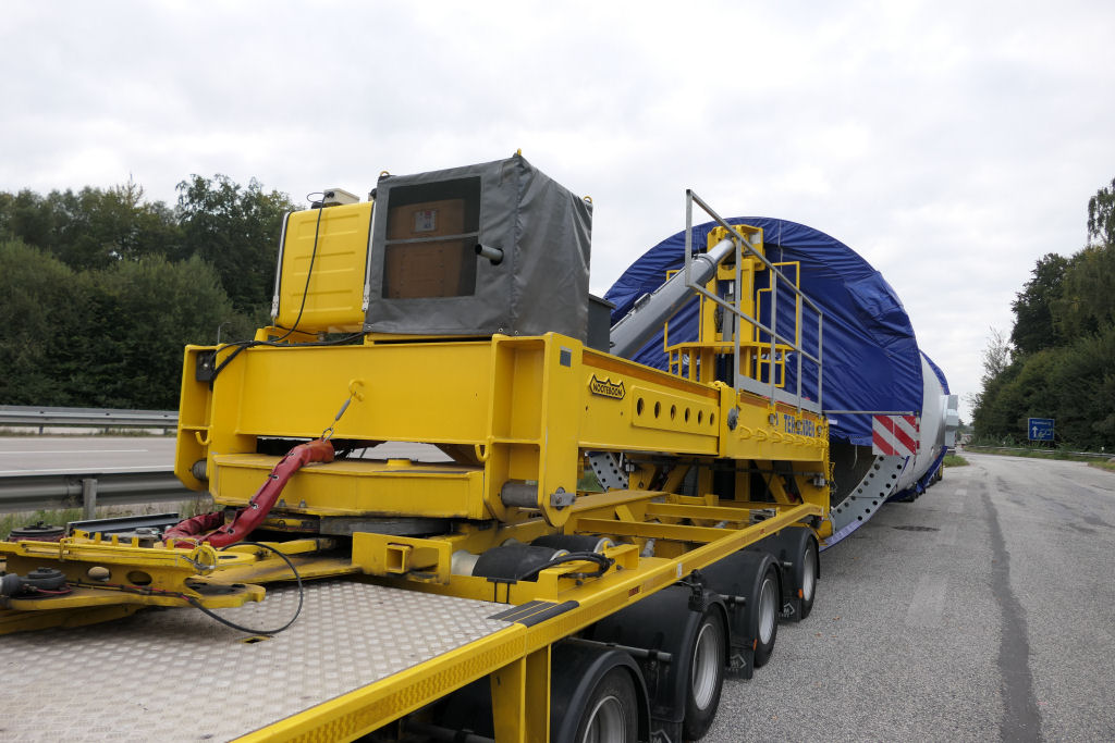 Scania S 660 8x4 mit Nooteboom 4/7 Megawindmilltransporter und Nordex WEA Bodensektion