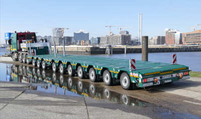 Niederlassungen Hamburg und Leipzig in Dienst Die siebenachsigen Schwerlast Semitieflader wurden mit dreiachs