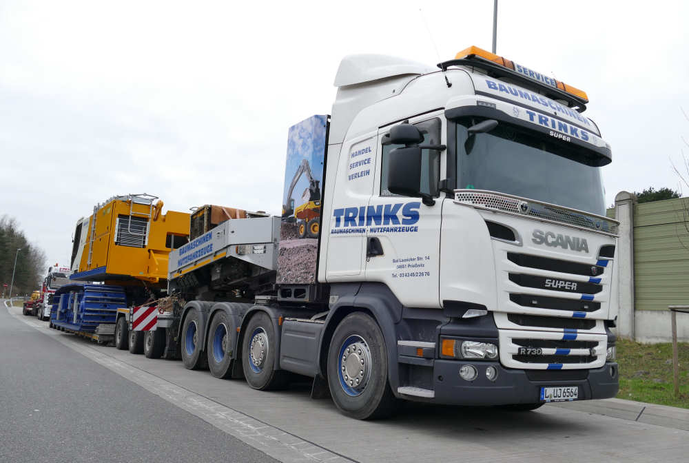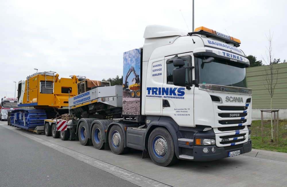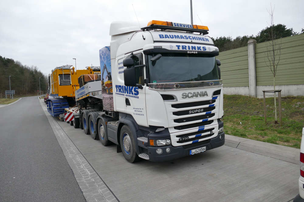Scania R 730 8x4 mit Goldhofer 3/5 Tieflader und Bauer BG 46 Grundgerät Transport