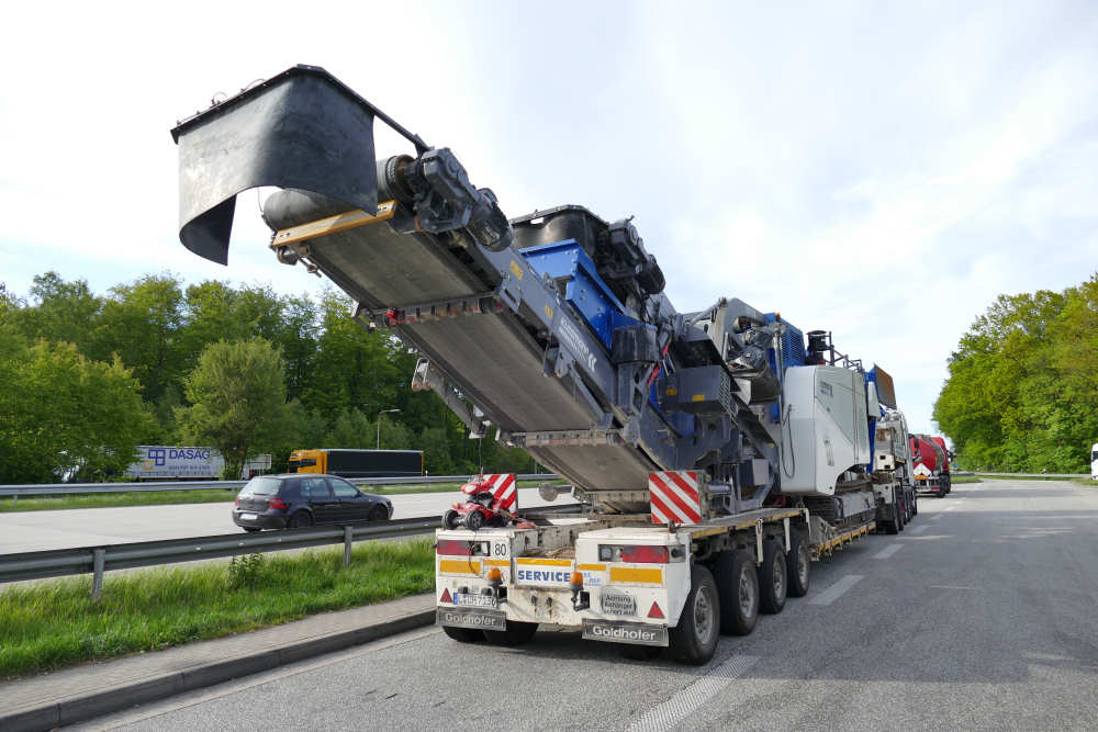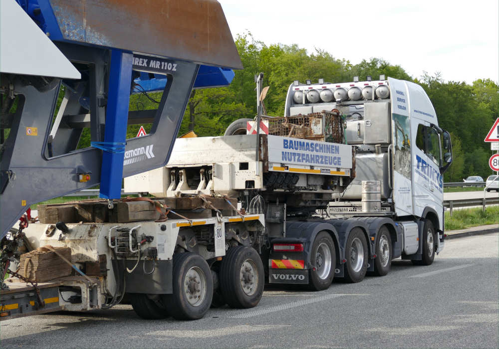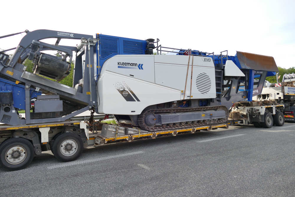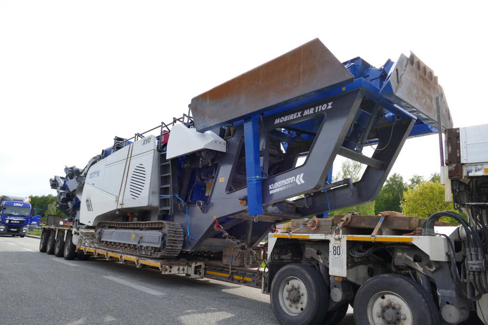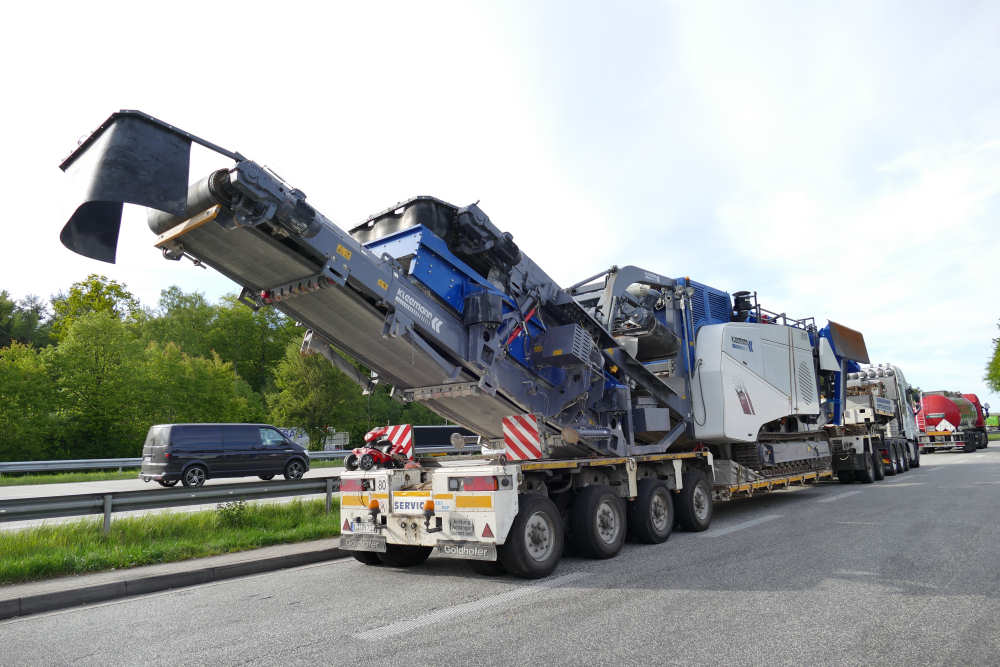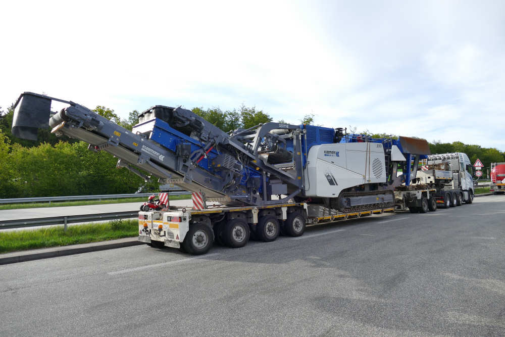 Volvo FH 04 750 8x4 mit Goldhofer 2/4 Tieflader und Kleemann Mobirex MR 110 Brecher