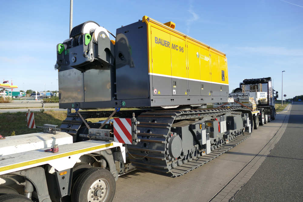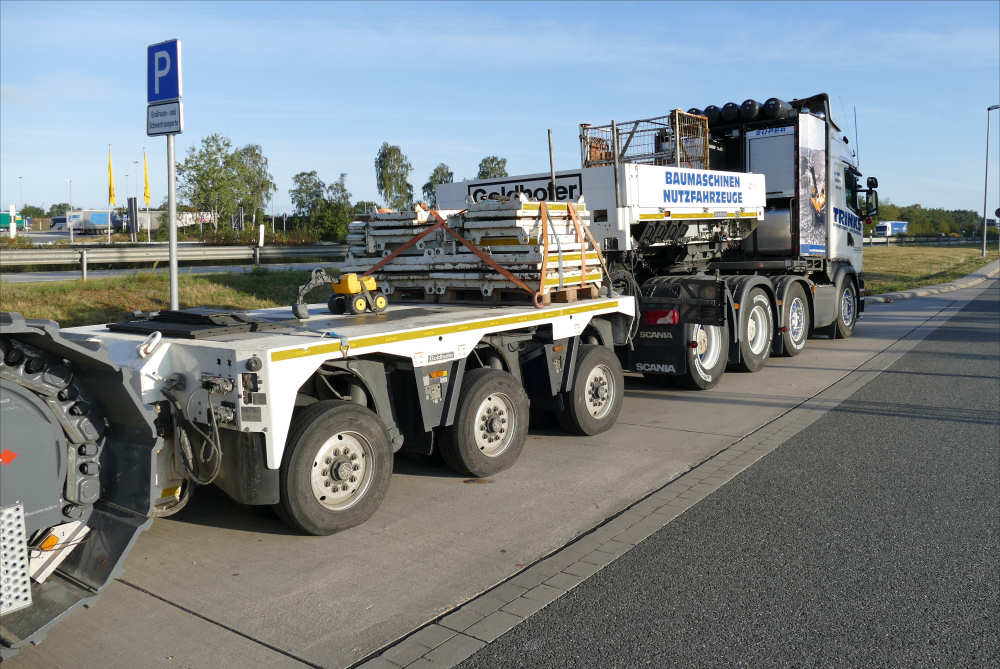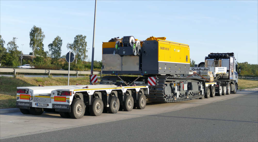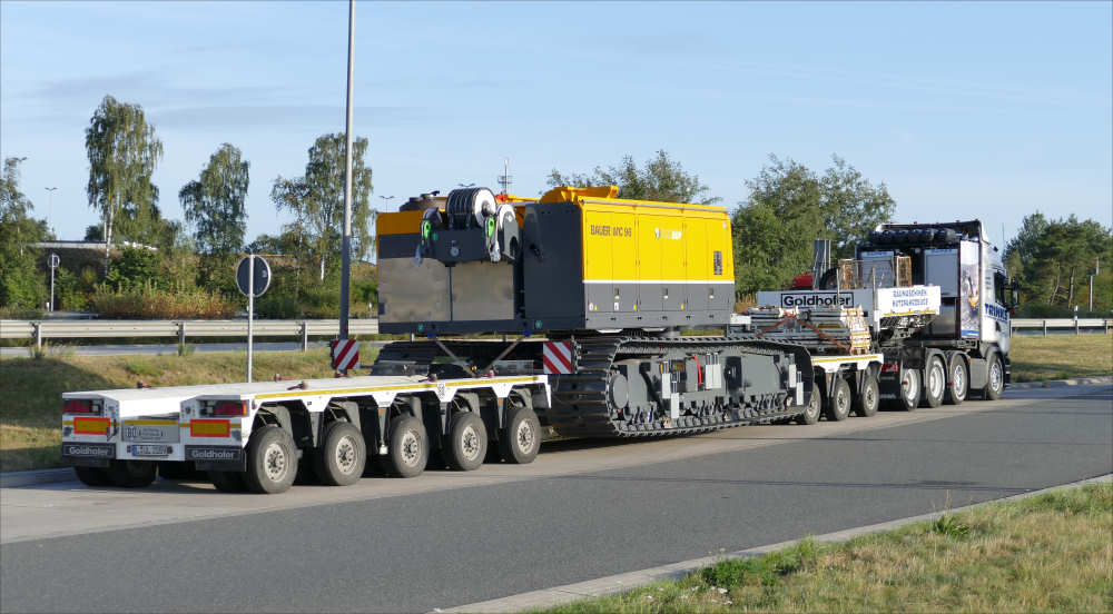 Scania R 730 8x4 mit Goldhofer 3/5 Tieflader und Bauer MC 96 Grundgerät Transport