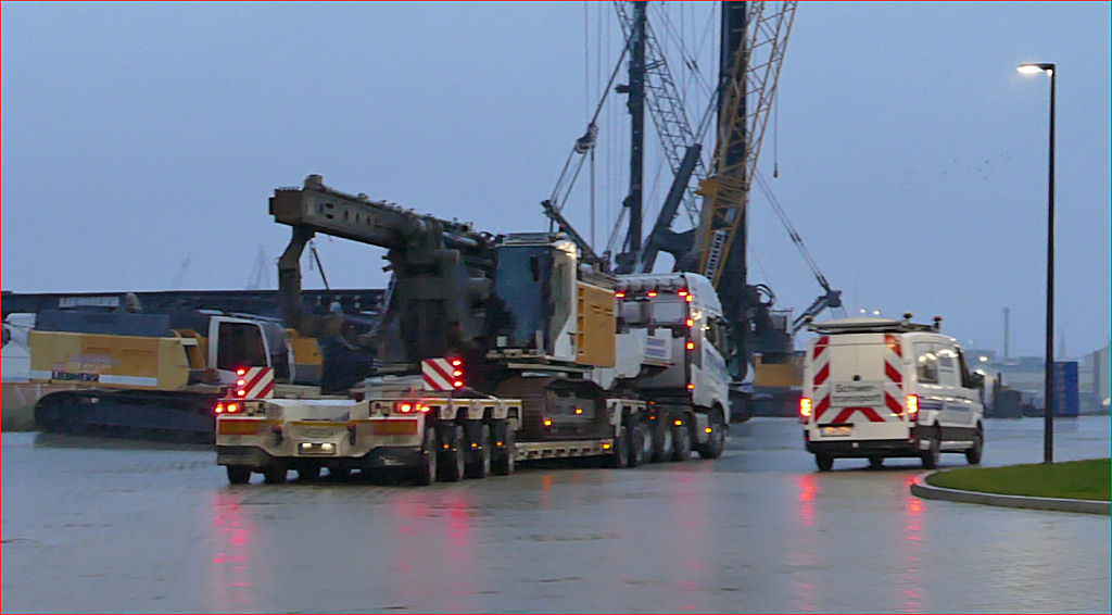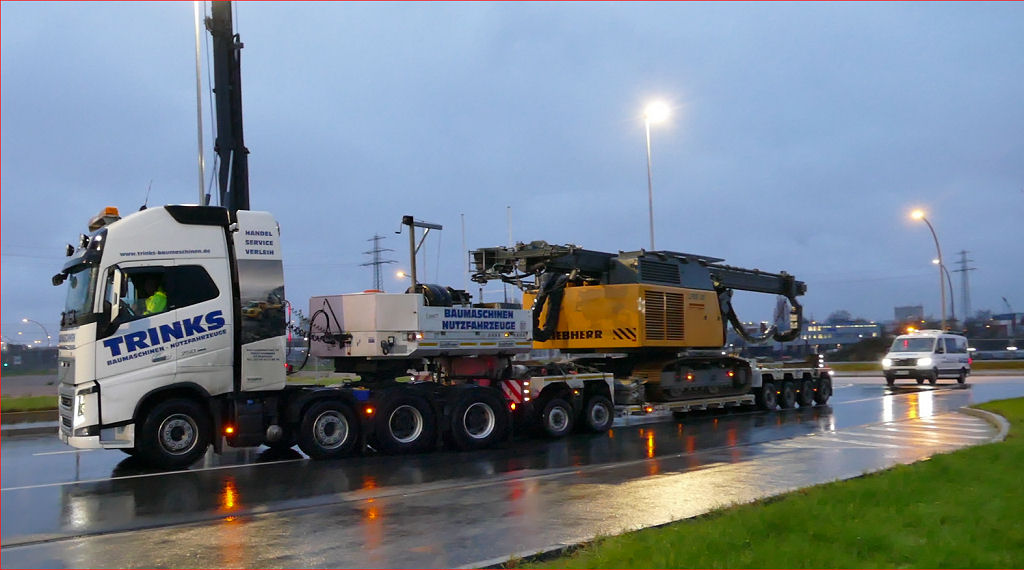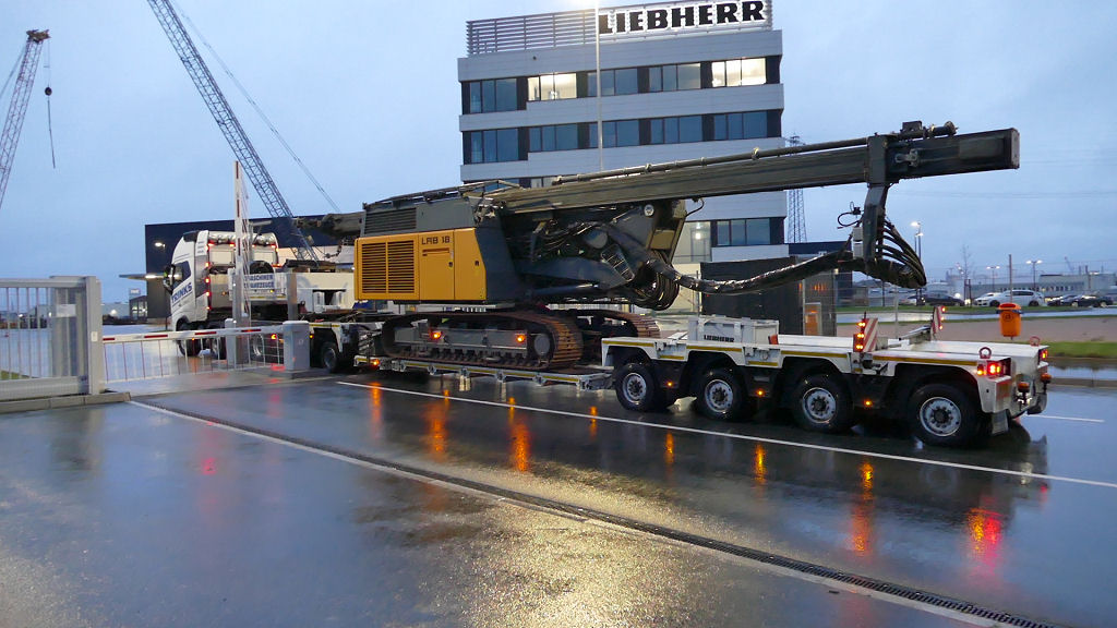 Volvo FH 04 750 8x4 mit Goldhofer 2/4 Tieflader und Liebherr LRB 18