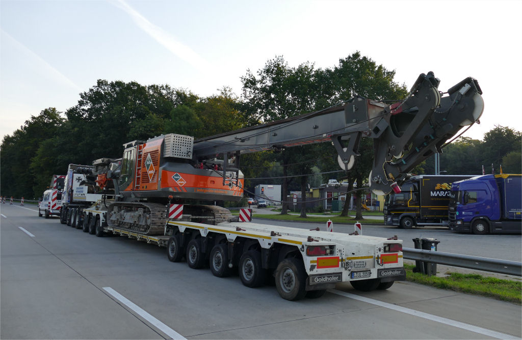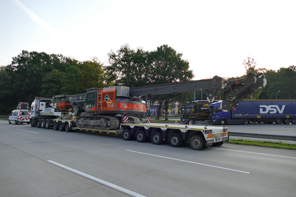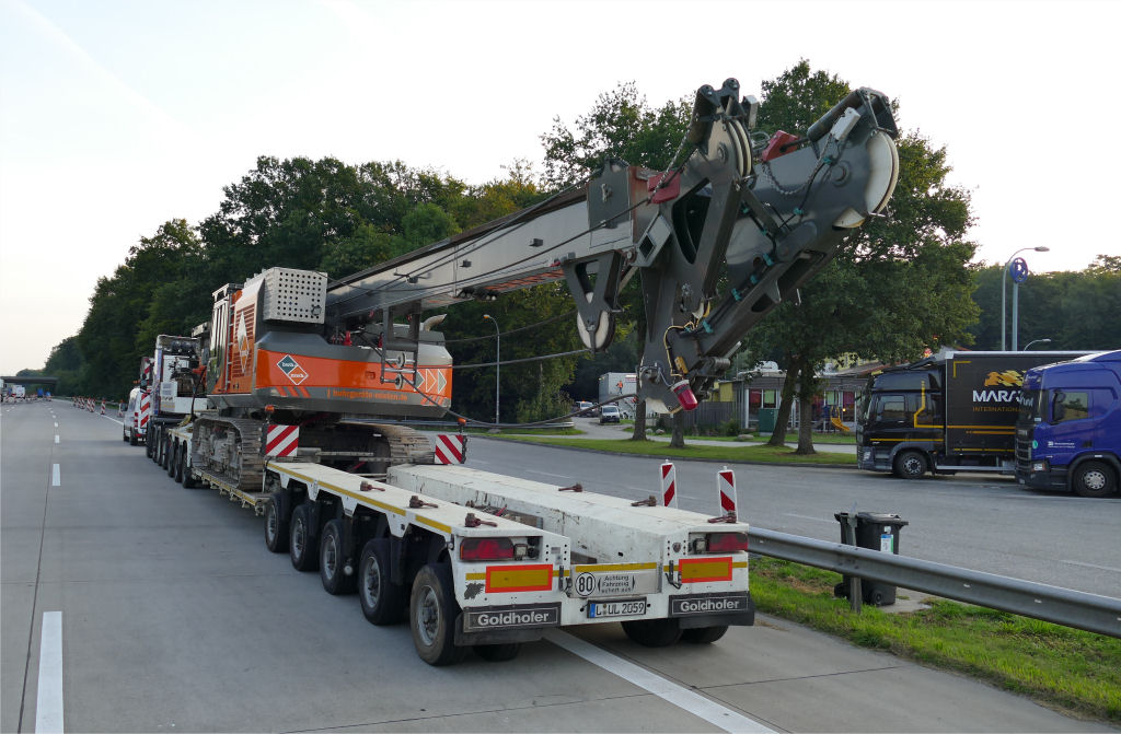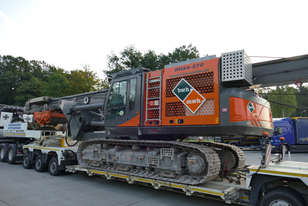 Scania R 730 8x4 mit Goldhofer 3/5 Tieflader und RH 24-270 Drehbohrgerät von BWH