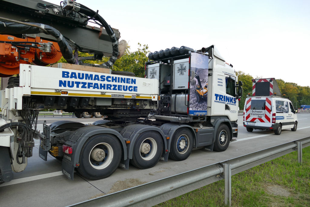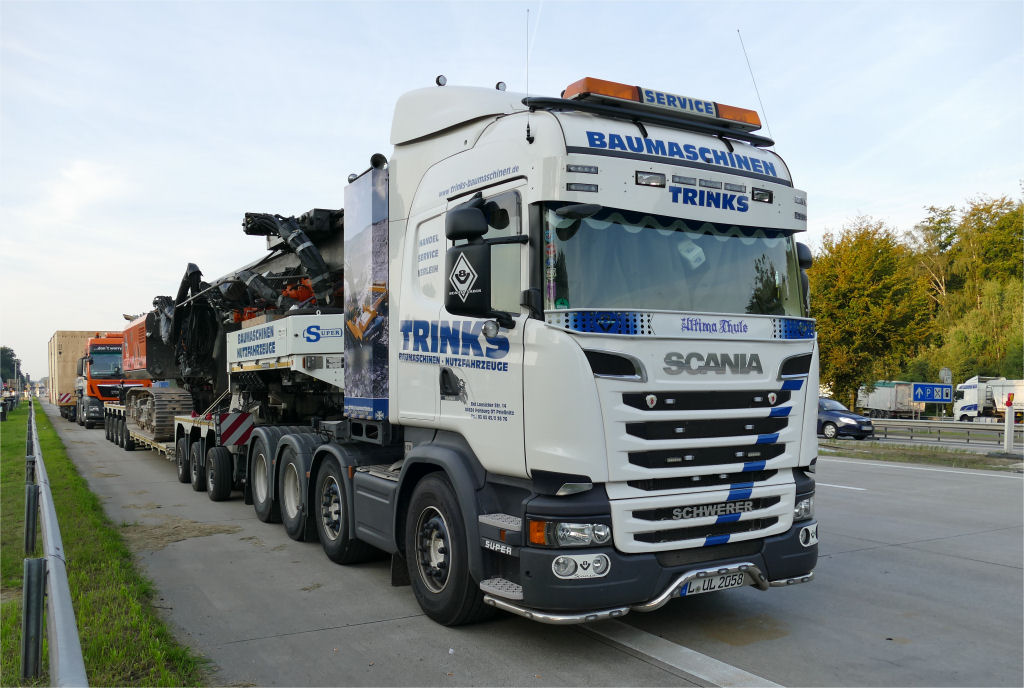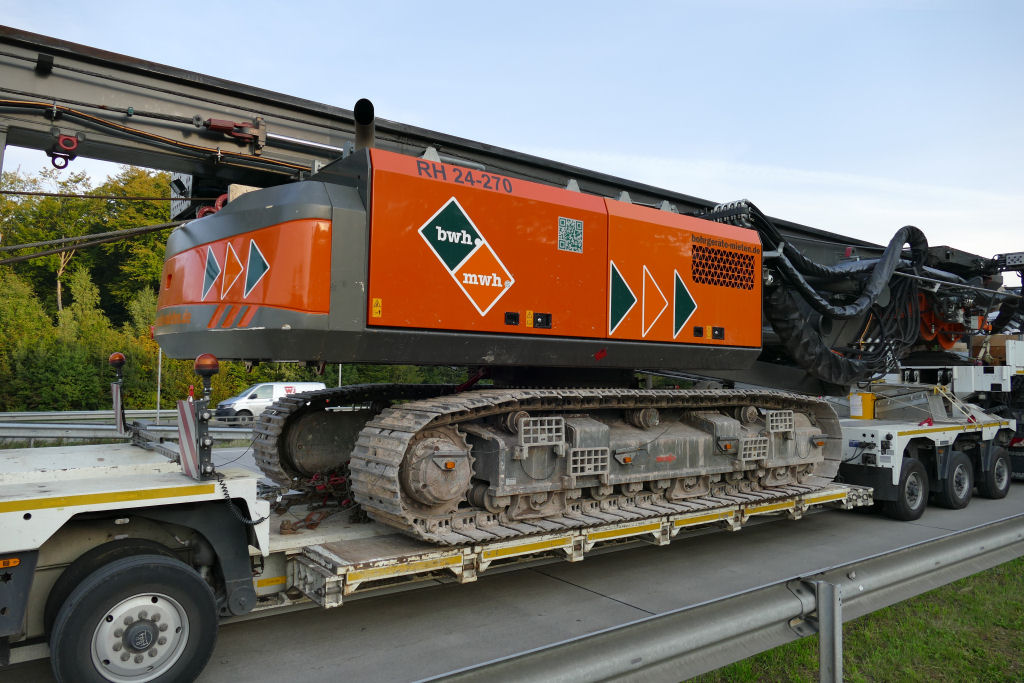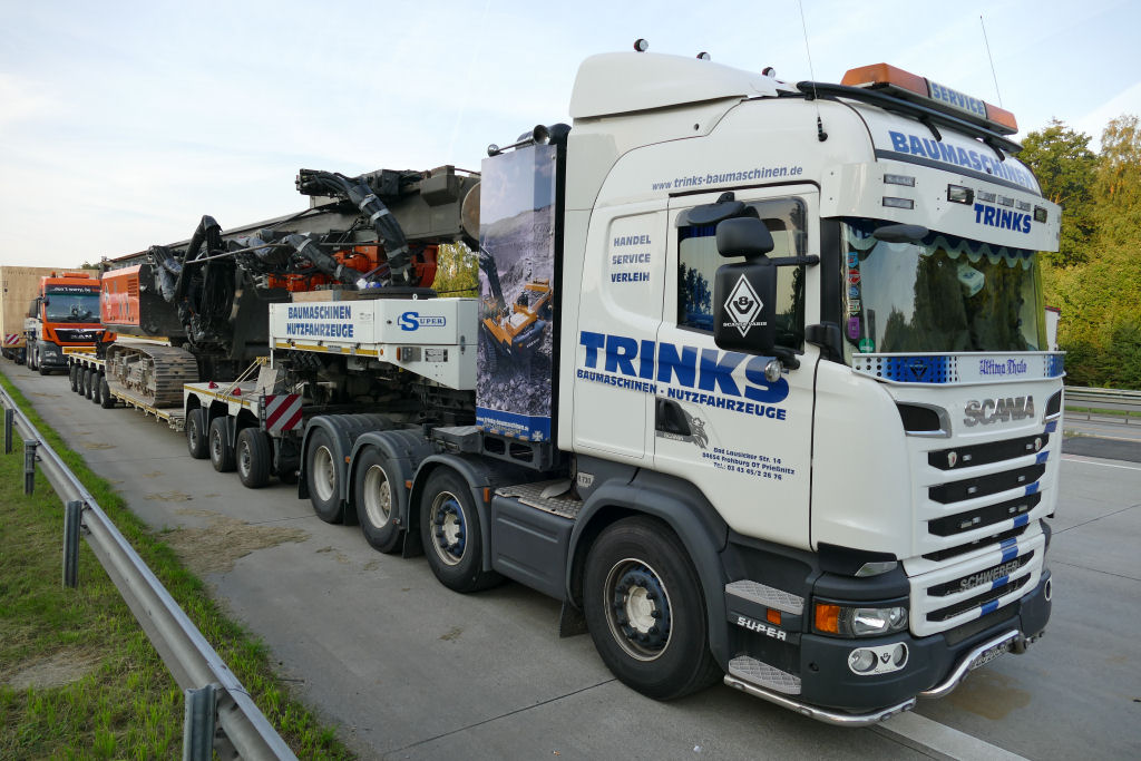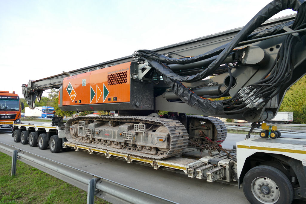 Scania R 730 8x4 mit Goldhofer 3/5 Tieflader und RH 24-270 Drehbohrgerät von BWH