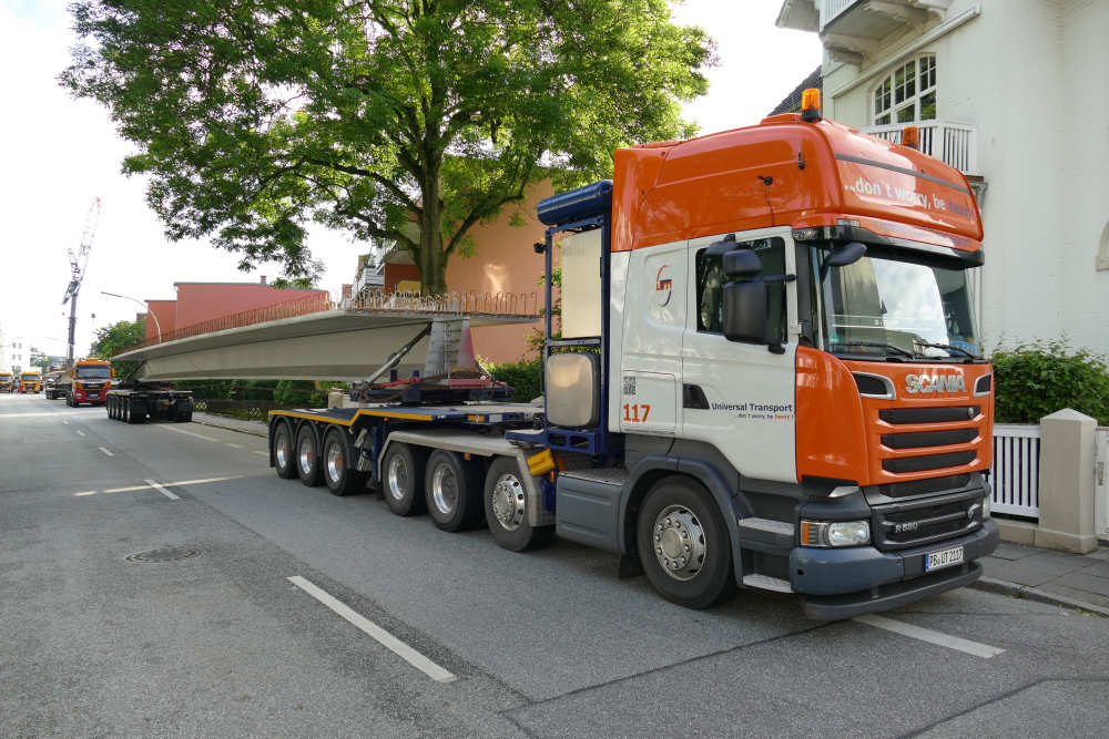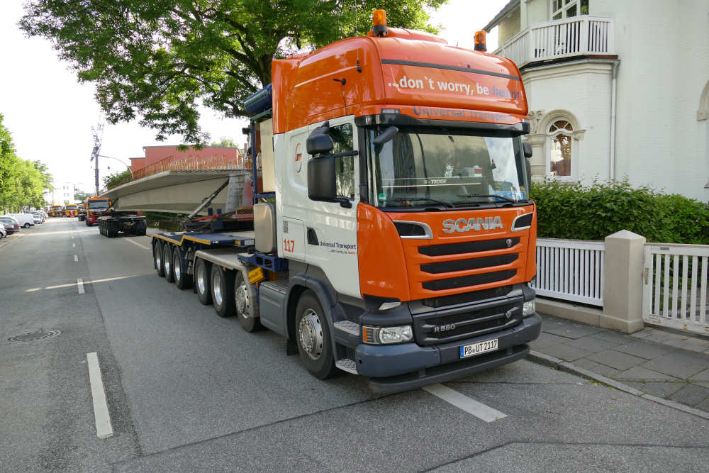 Scania R 580 8x4 ( Nr 117) mit Doll 3/5 Nachläuferzug und Brückenbinder