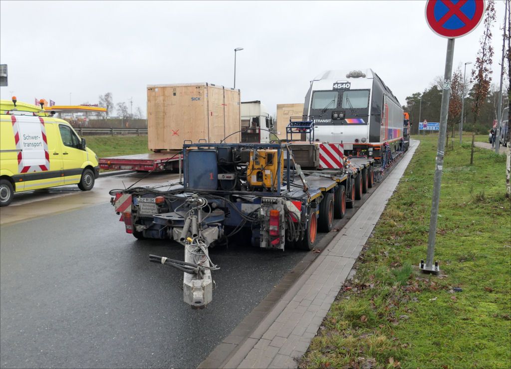 MAN 41.640 TGX ( Nr.25 ) mit Goldhofer 14 achs THP Anhänger und Bombardier ALP 45 Lok