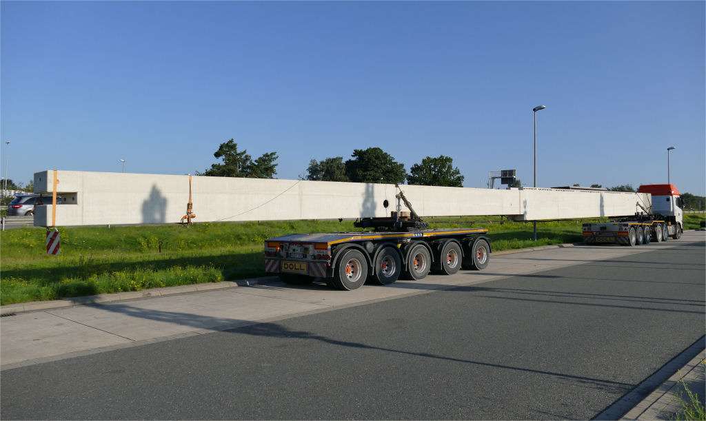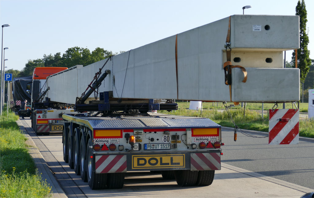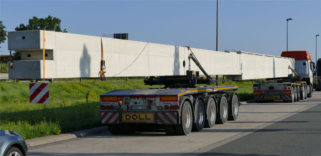Iveco X Way 570 6x4 mit Doll 3-5 Nachläuferzug und Betonsäule