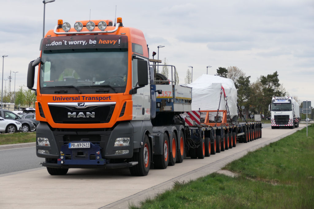 Universal Transport transportierte das zweite, von zwei Maschinen Pressenteilen für die