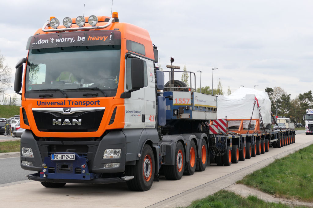 Die Schwerlastkombination bestand aus MAN 41.640 TGX und sechzehn Achs THP UT Sattelroller mit