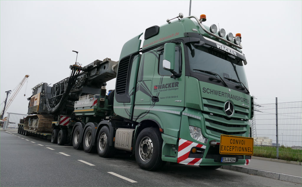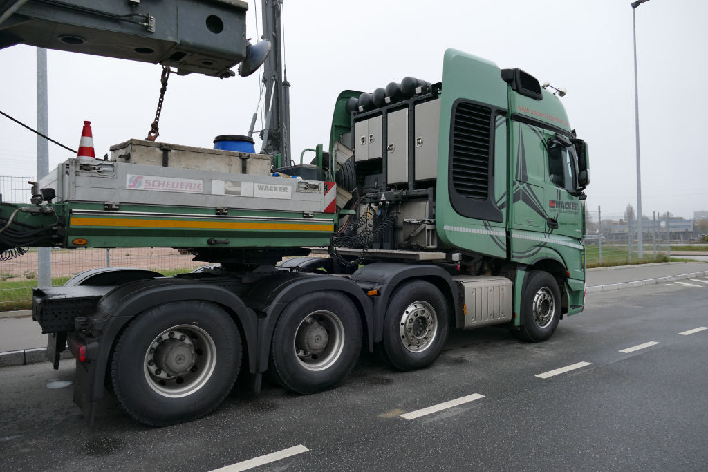 MB 4163 Actros SLT mit Scheuerle 2-5 Euro Compact und Liebherr LB 28 Drehbohrgerät