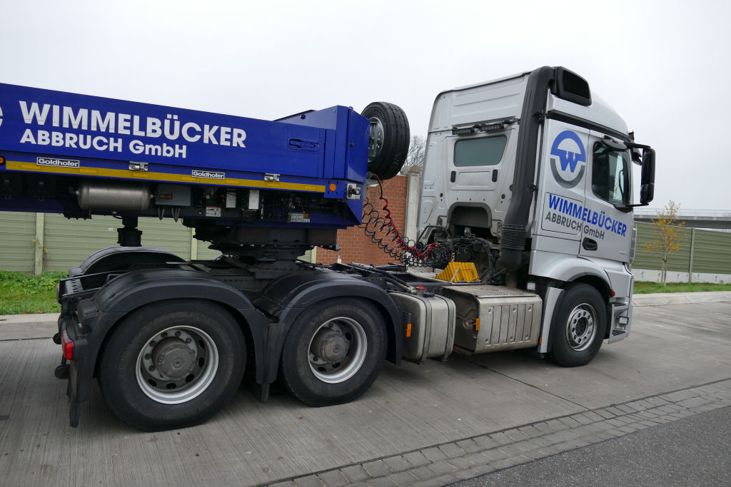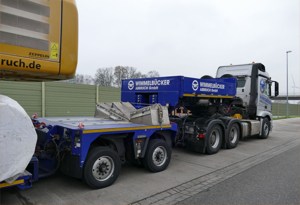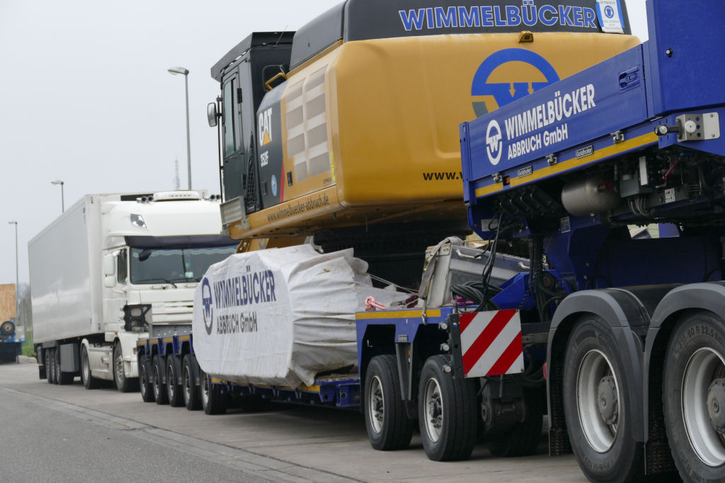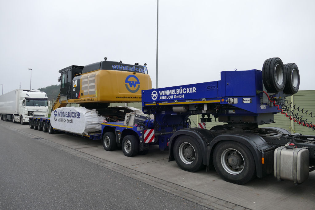 MB 2852 Actros MP 4 mit Goldhofer STZ VP 7 Tieflader und CAT 352 F