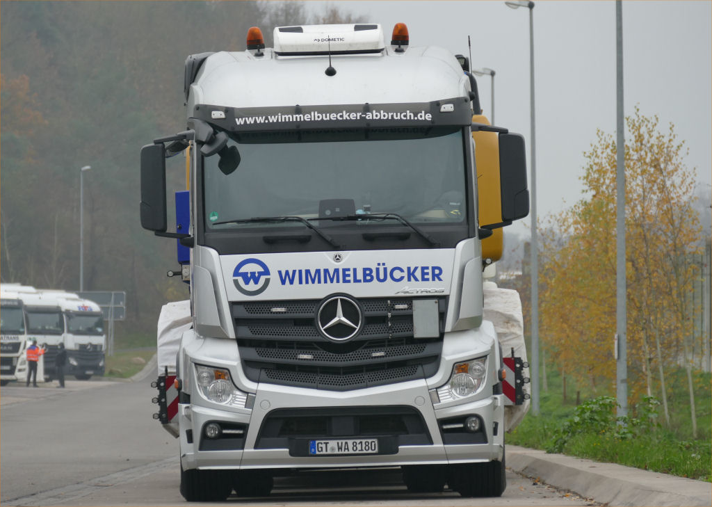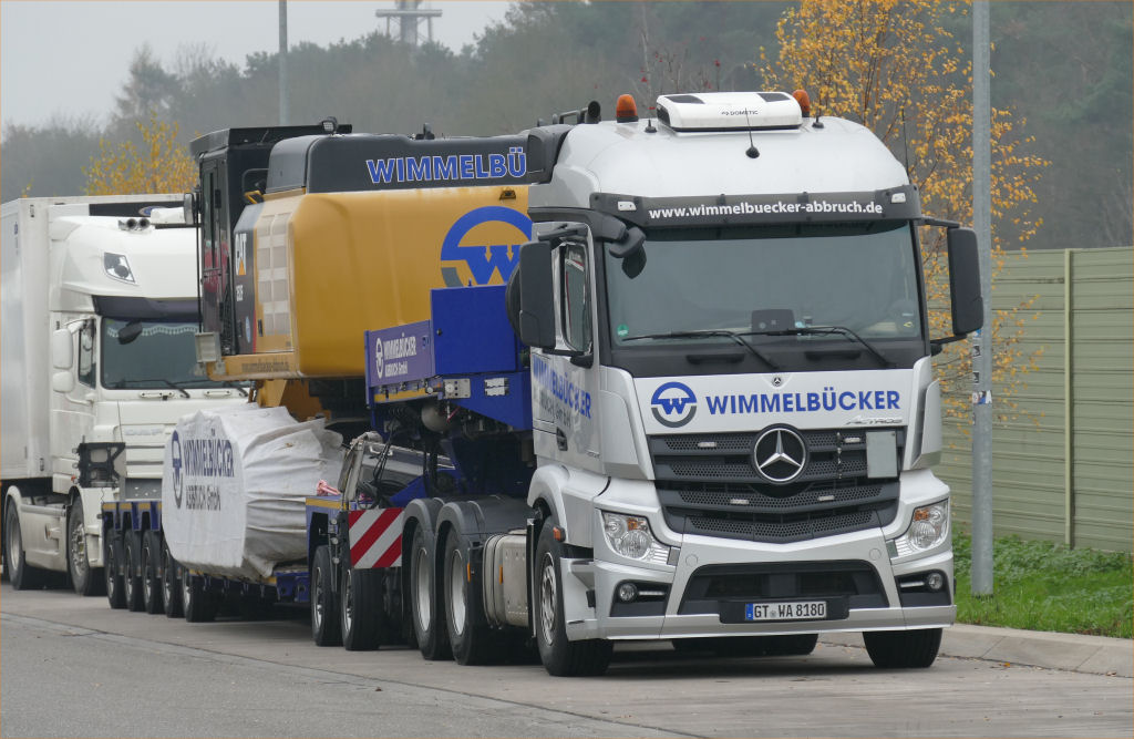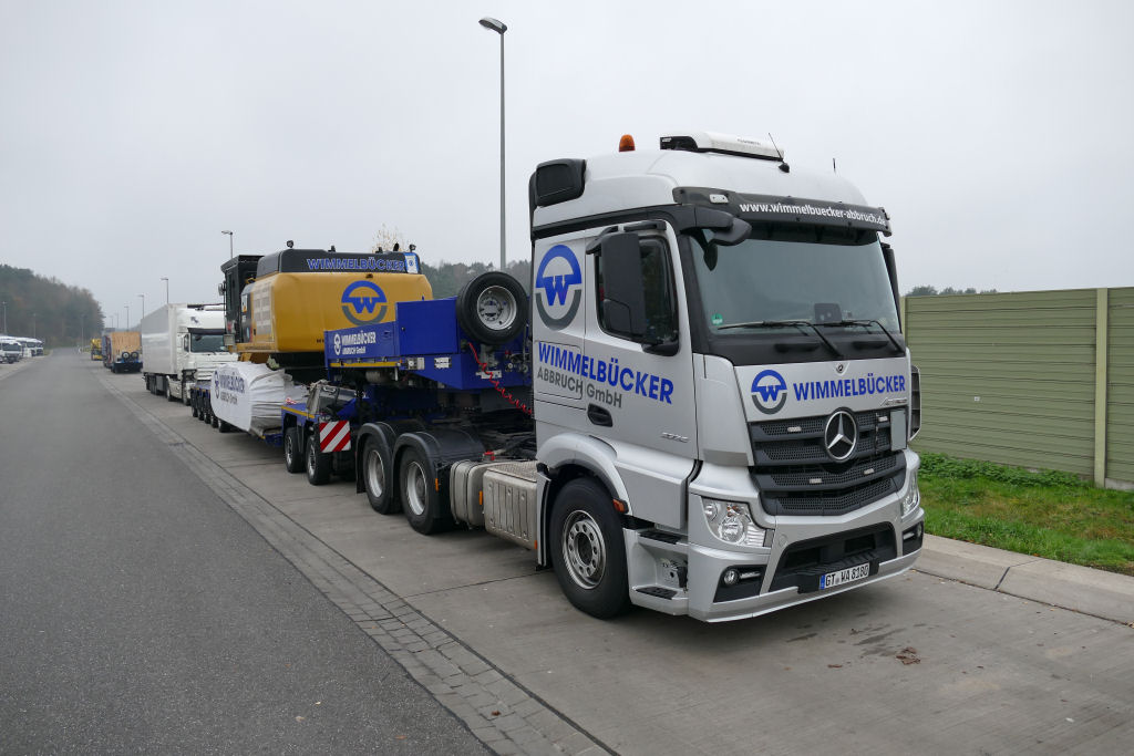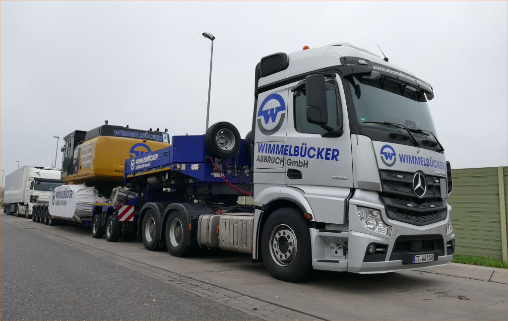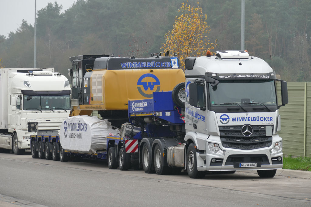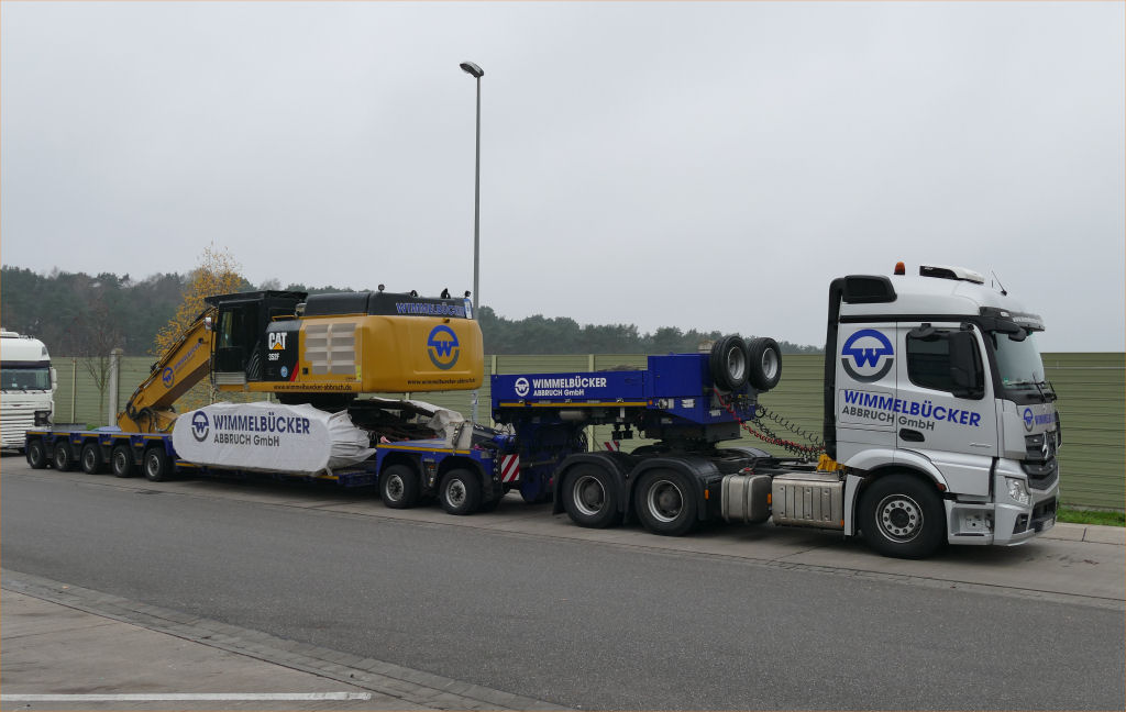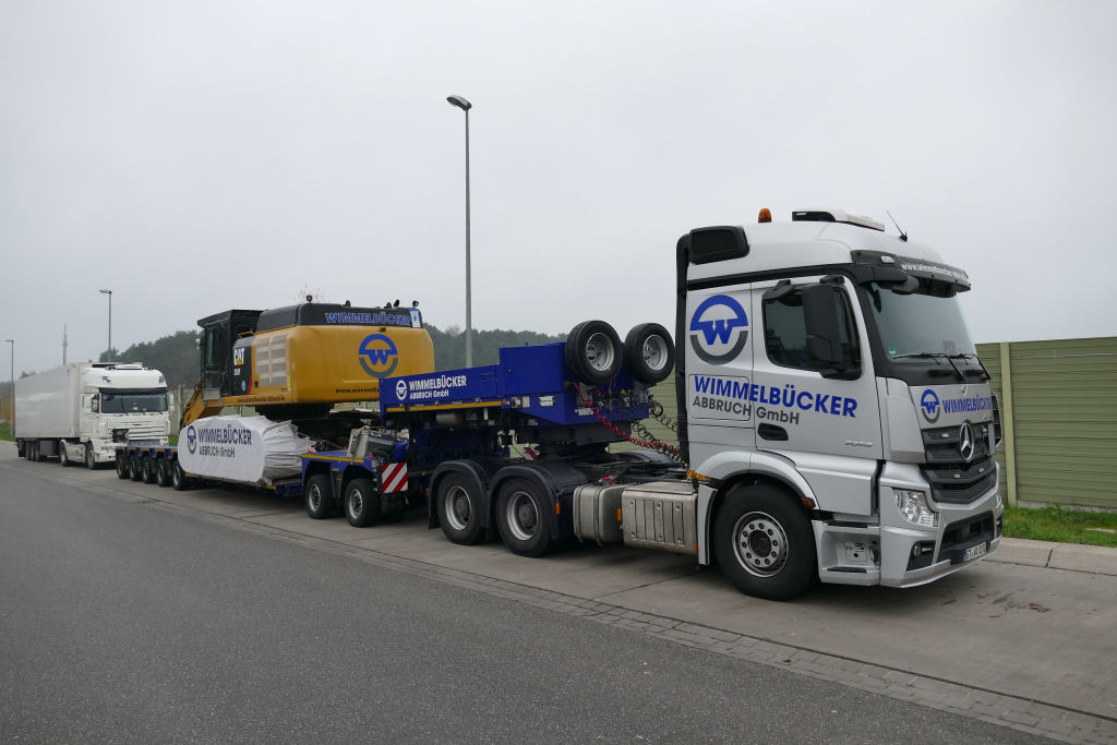 MB 2852 Actros MP 4 mit Goldhofer STZ VP 7 Tieflader und CAT 352 F