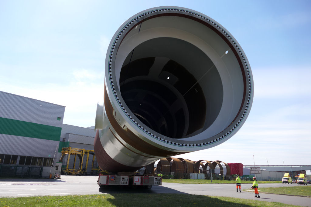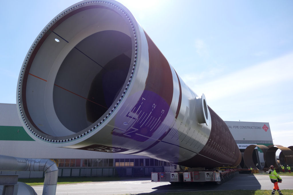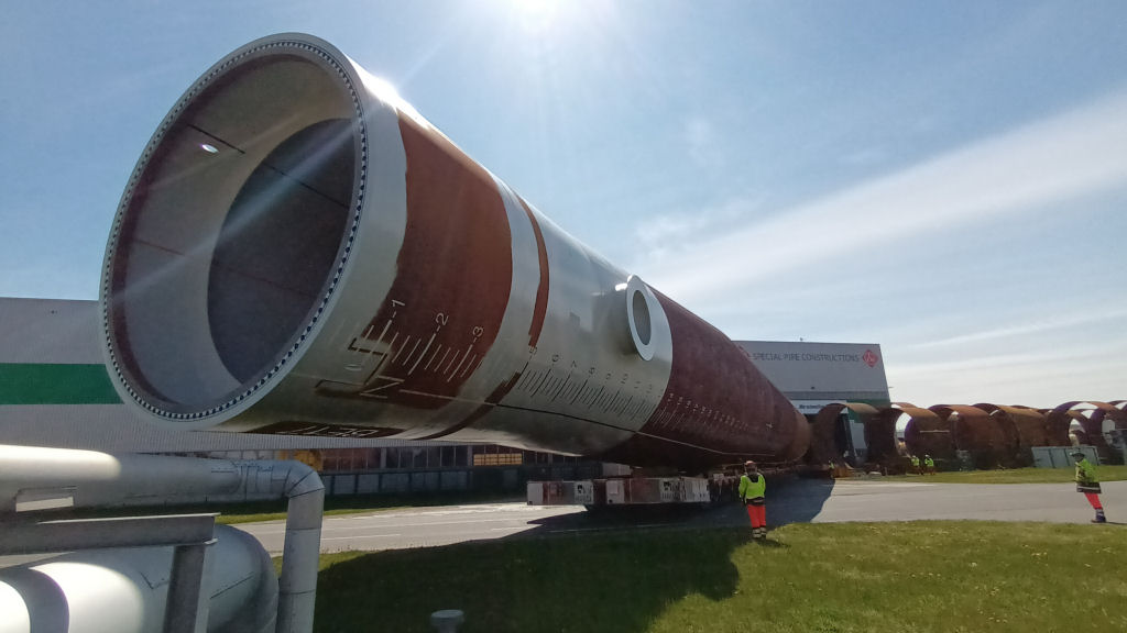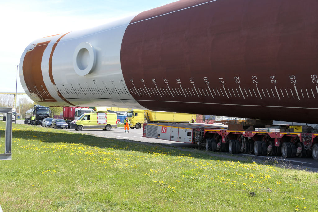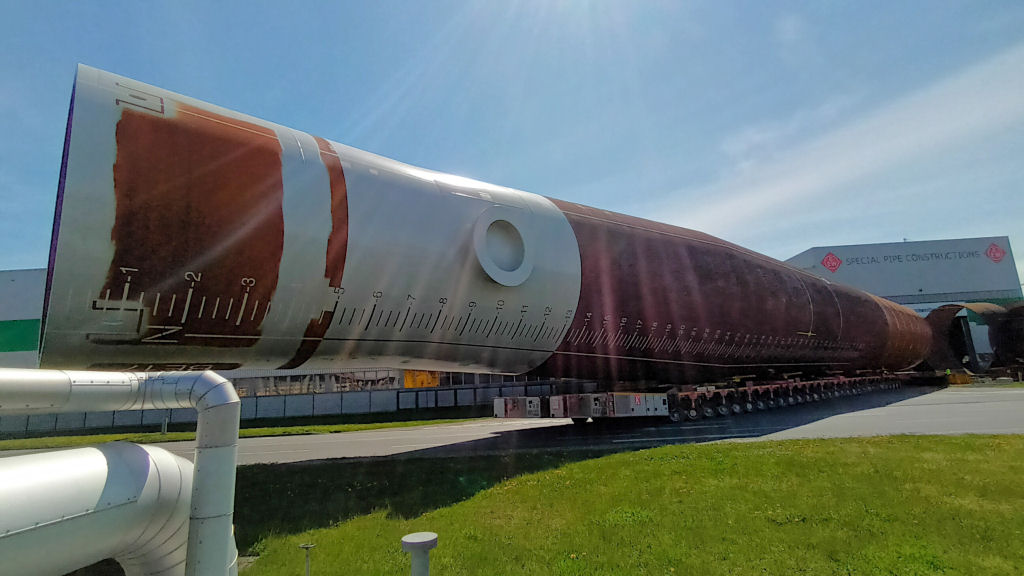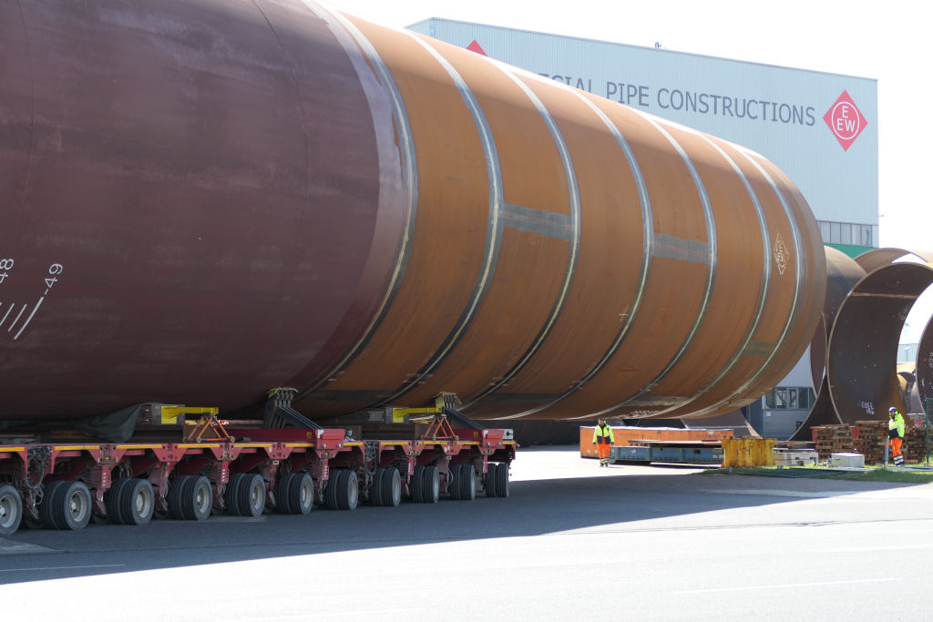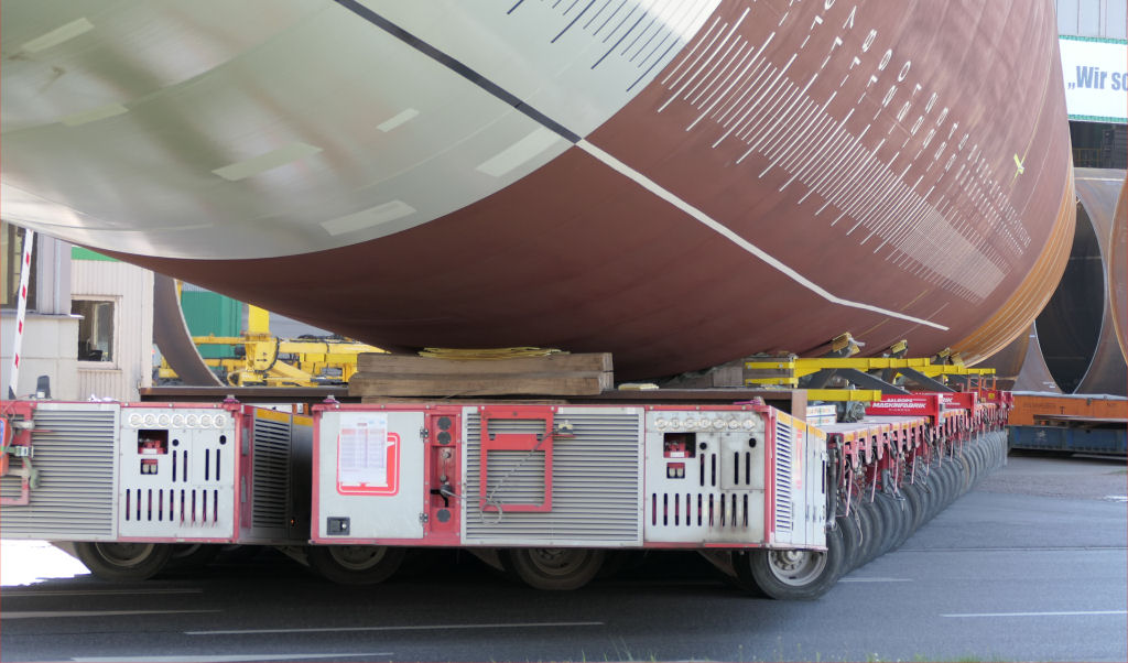 Transport eines 1400 t Monopiles aus 2x 30 SPMT Achslinien