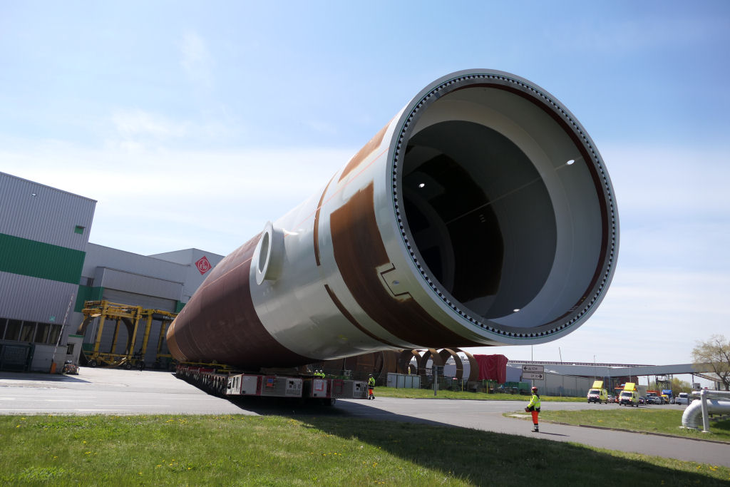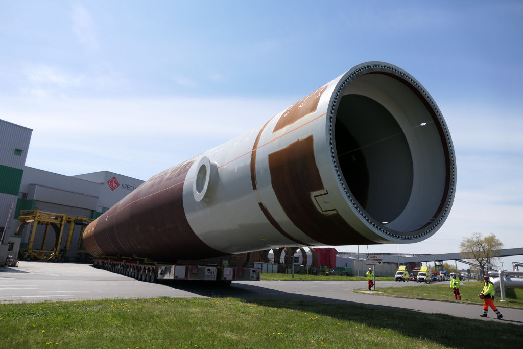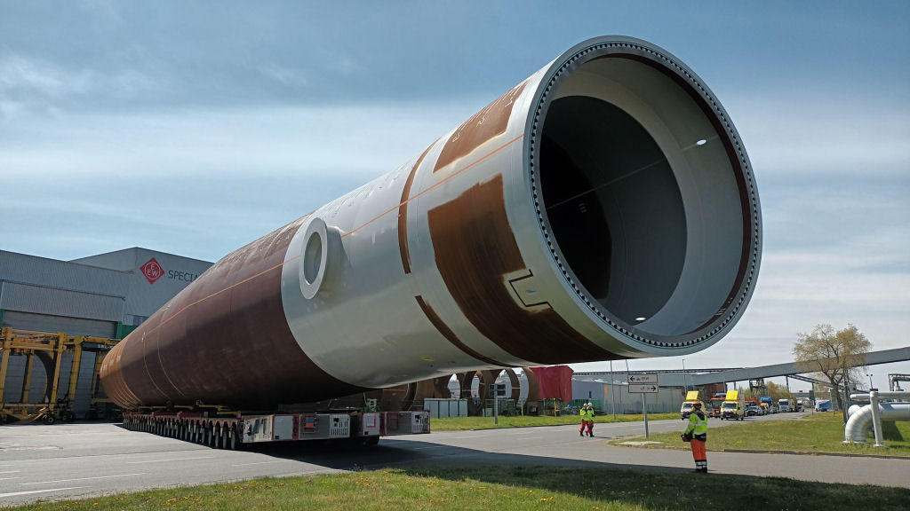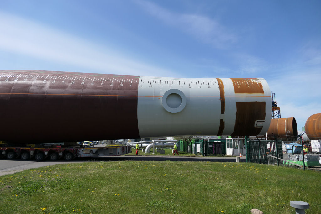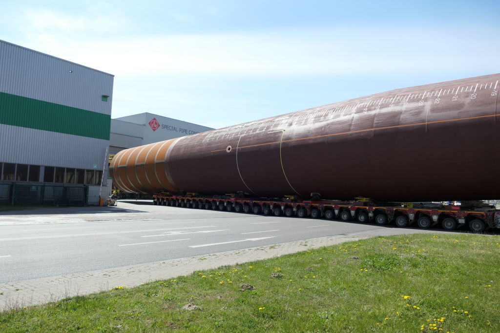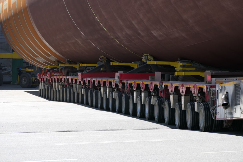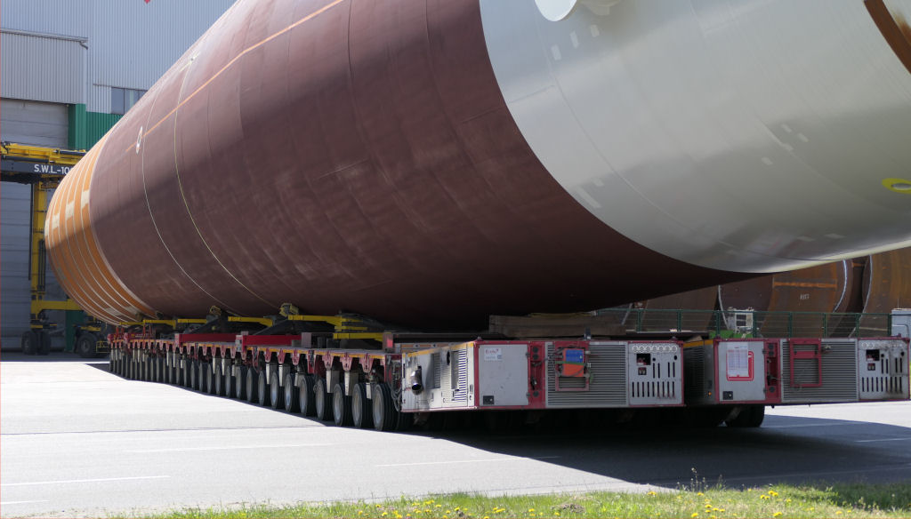 Transport eines 1400 t Monopiles aus 2x 30 SPMT Achslinien