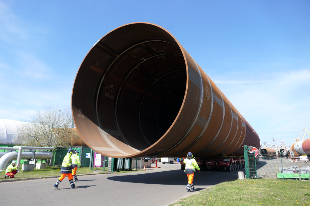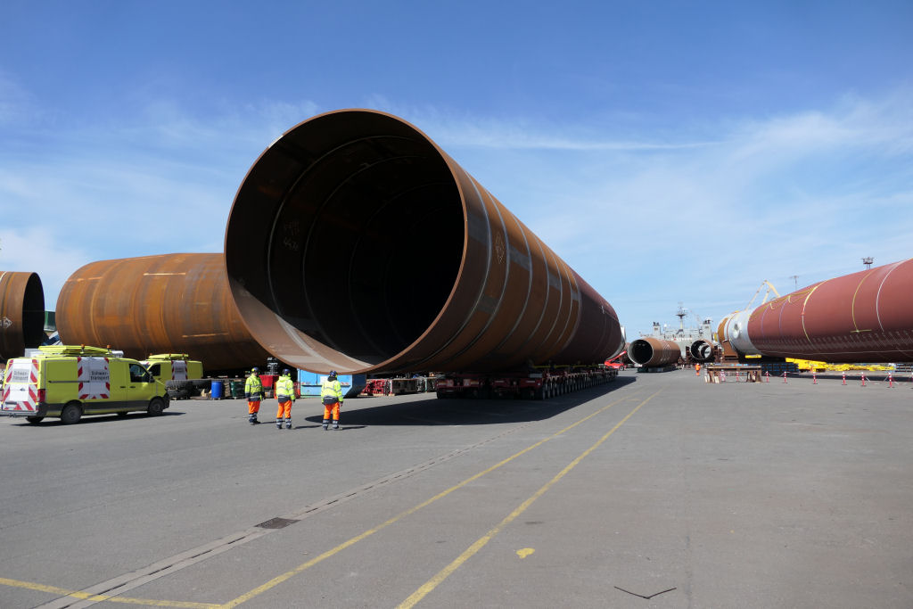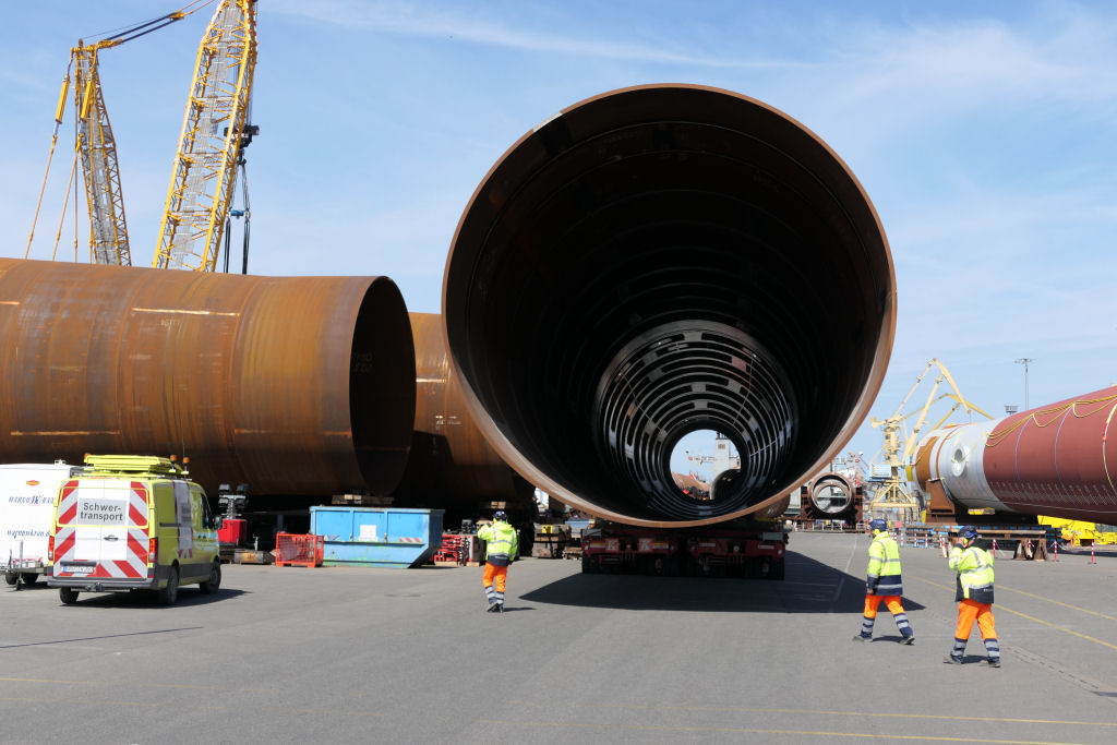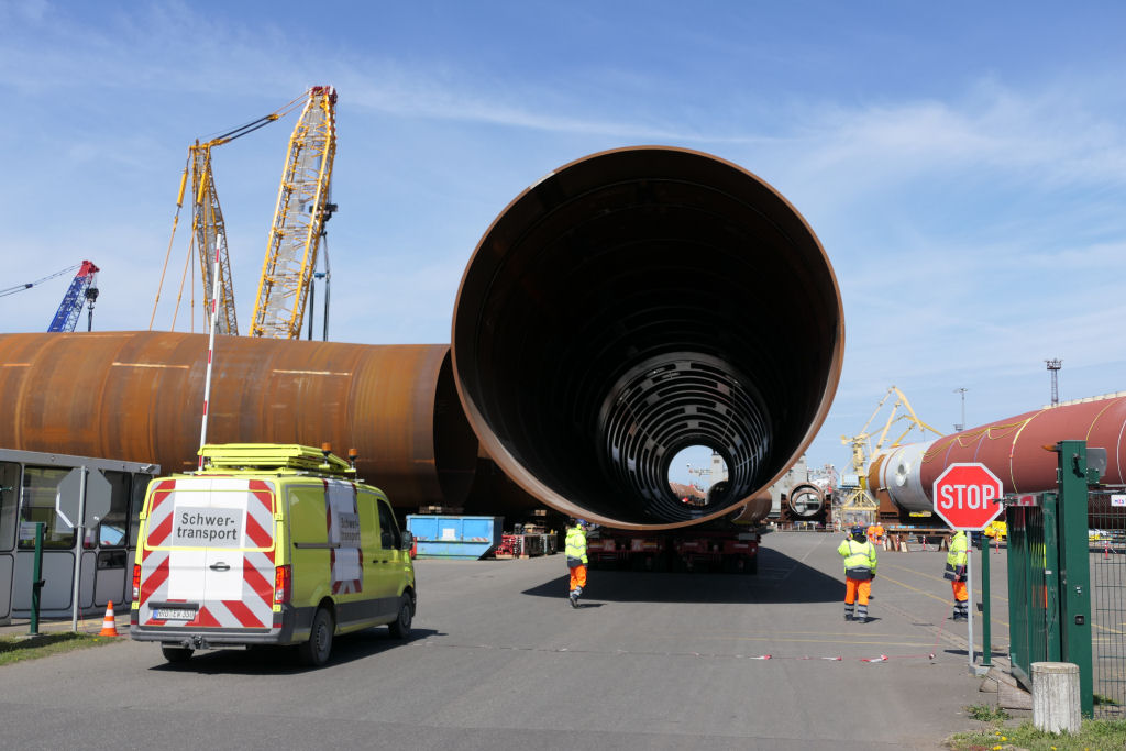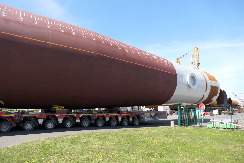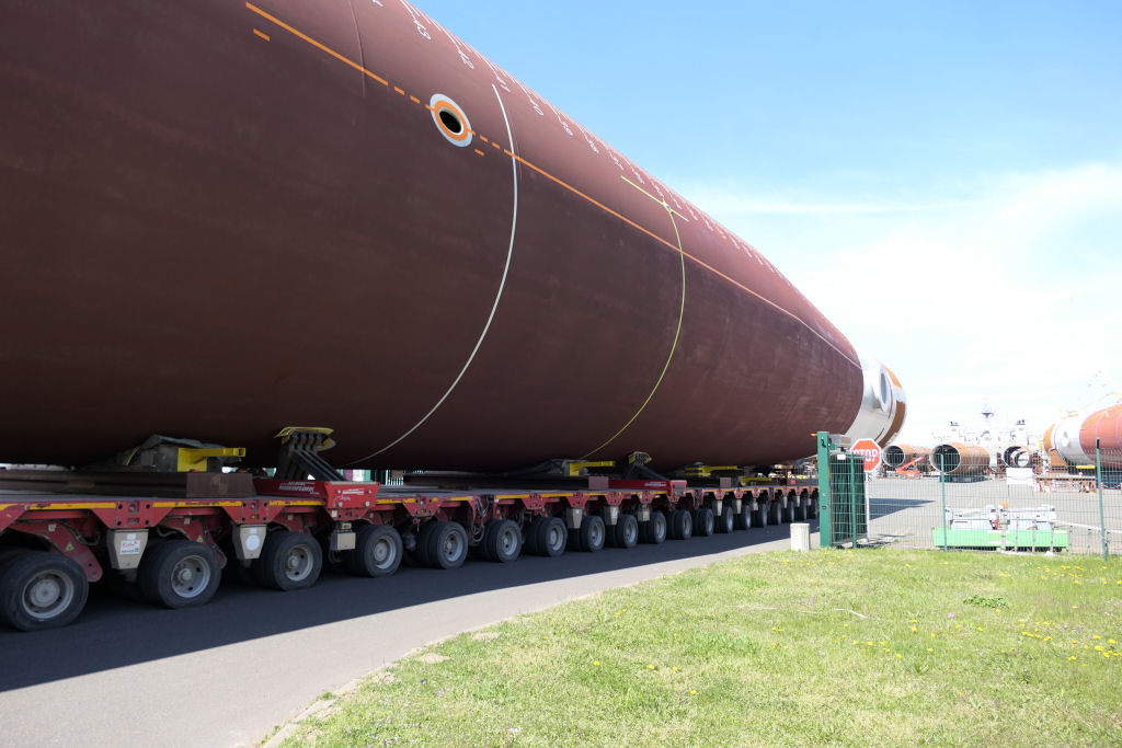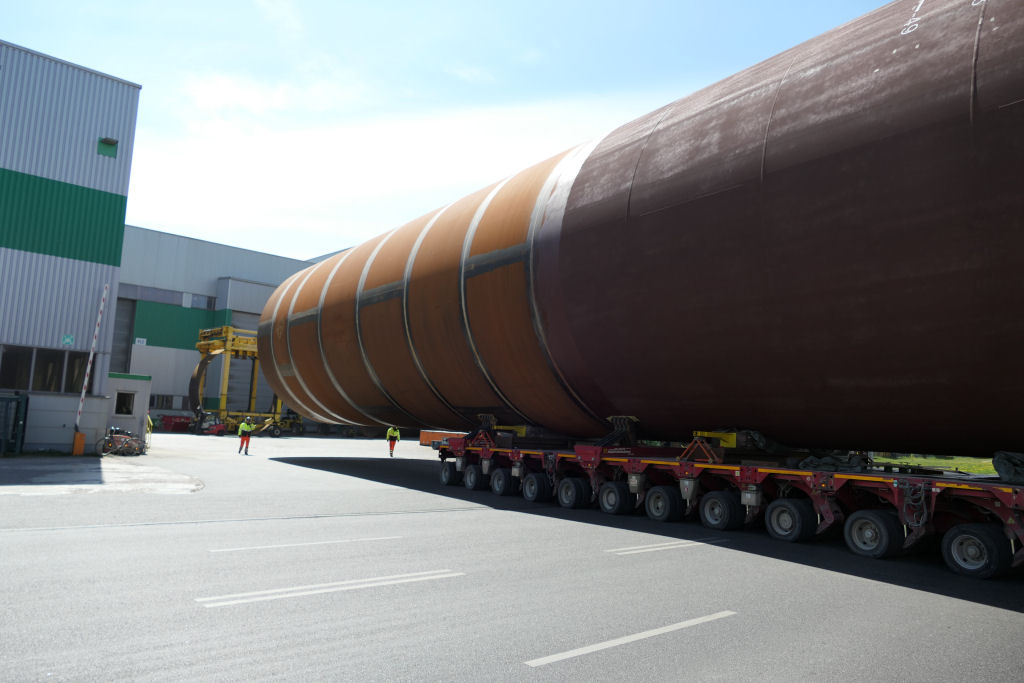 Transport eines 1400 t Monopiles aus 2x 30 SPMT Achslinien