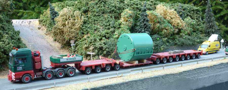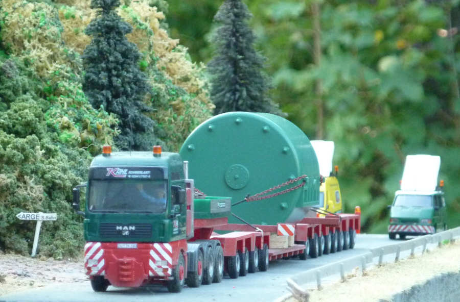 Begleitet wird der Transport von zwei Kahl BF 3s, einmal aktuell und einmal historisch...