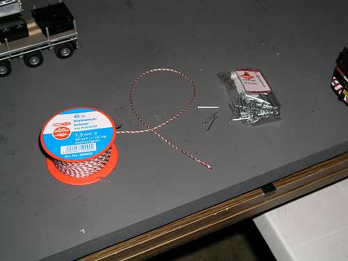 und 20mm lange und 2mm dicke Stahlsplinte als Halter aus der Stahlwarenabteilung.