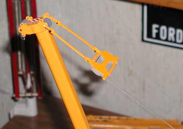 Die Achse der oberen Seilscheiben am Rollenkopf ist eine 2 mm Messingröhre,