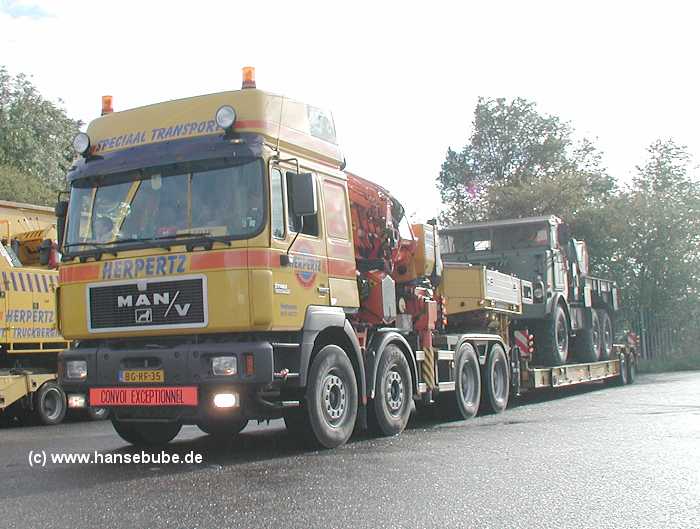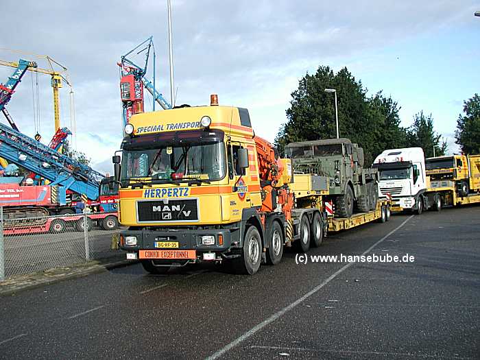 Eine MAN vierachs Zugmaschine der Firma Herpertz Speciaal Transport