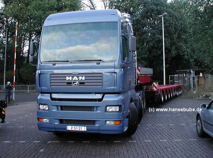 In Szene gesetzt wurde er mit einem zehnachsigen Sattelroller von Mammoet