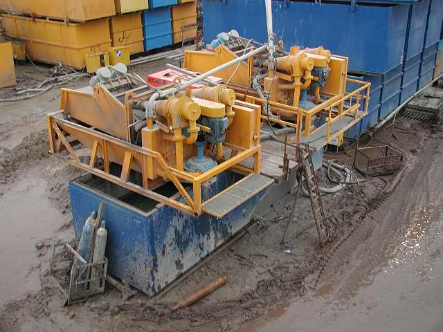 Von der Entsandungsanlage führern Rohre das gereinigte Bentonit den Lagercontainern zu .