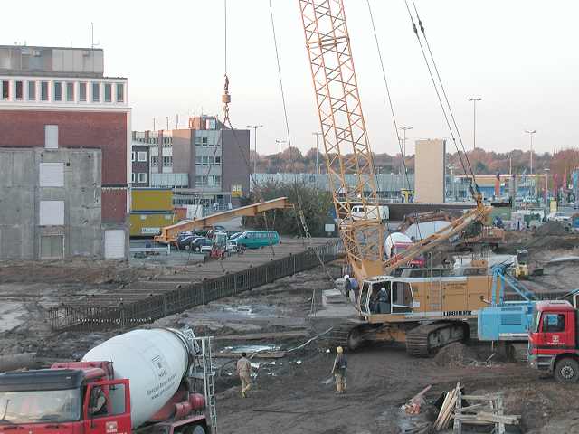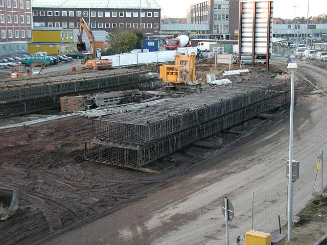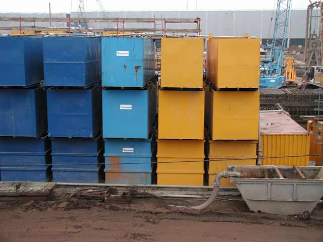 Weitere Bewehrungskörbe liegen bereits auf der Baustelle bereit .