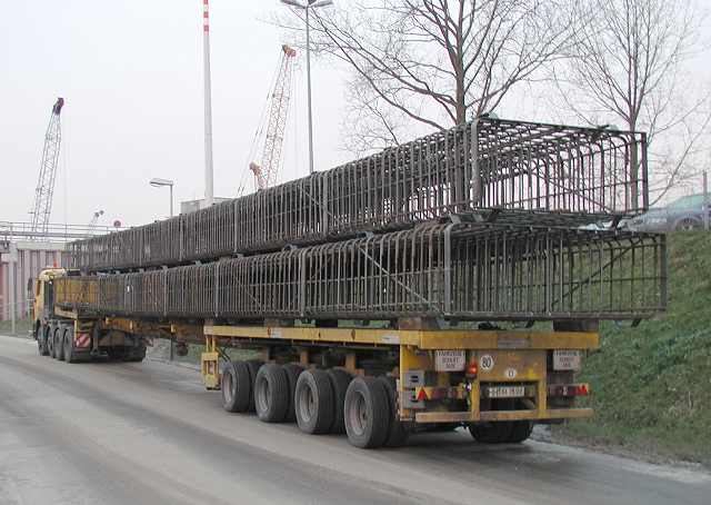 Ein Transport mit Bewehrungskörben aus Baustahl ist angekommen .