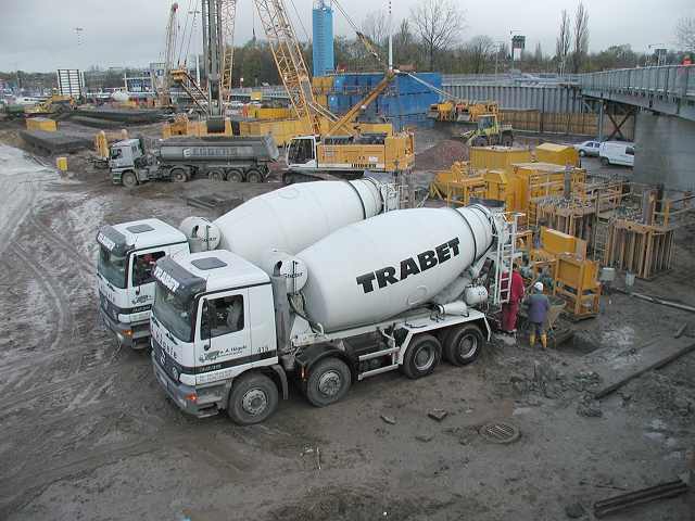 und immer noch trafen weitere Mischer an der Baustelle ein ...