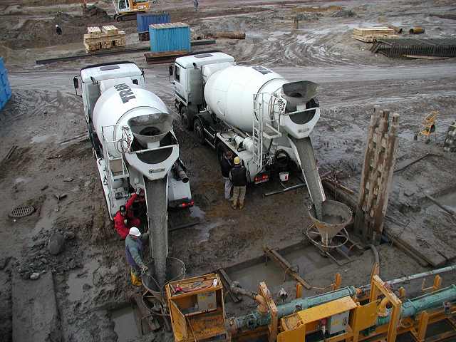 Eintreffen ,an den Schacht rangieren ,Beton abladen und wieder weg ,jeweils im Minutentakt ...