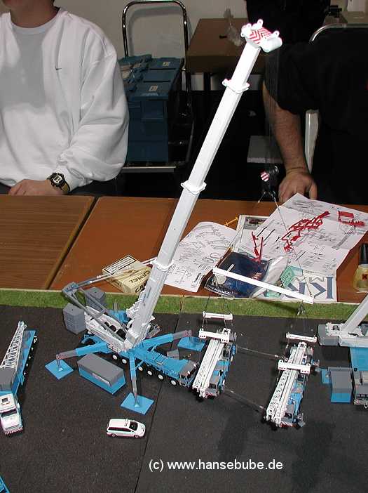was sie können, dieser LTM 1800 hat zwei kleinere Krane am Haken.