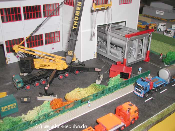 einer Werkhalle ,mit Hilfe einer hydraulischen Hebe- und Verschiebeanlage.