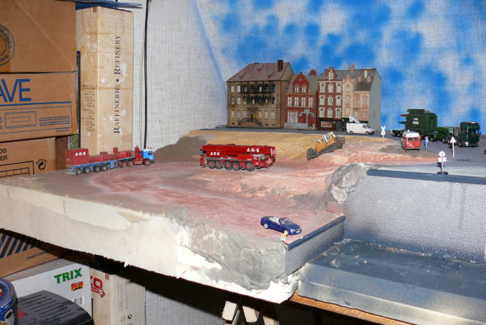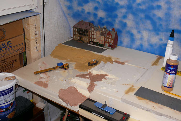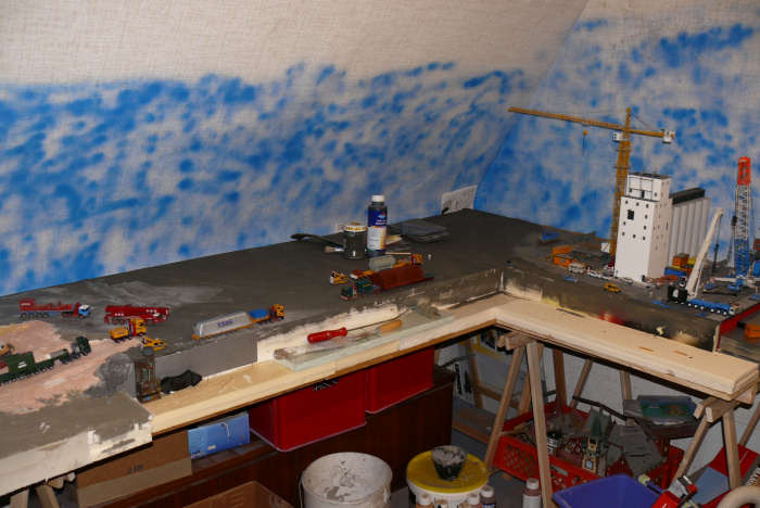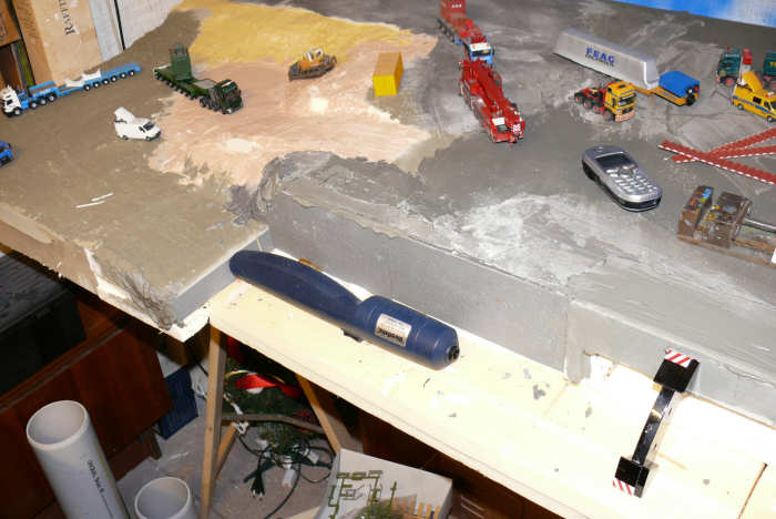 Die tiefliegende Fläche und die Rampen wurden komplett mit abgetöntem Gips gespachtelt