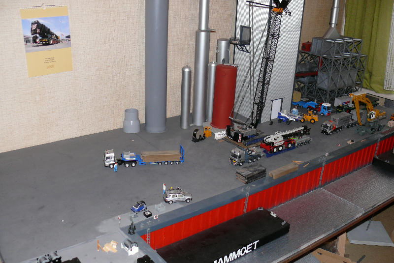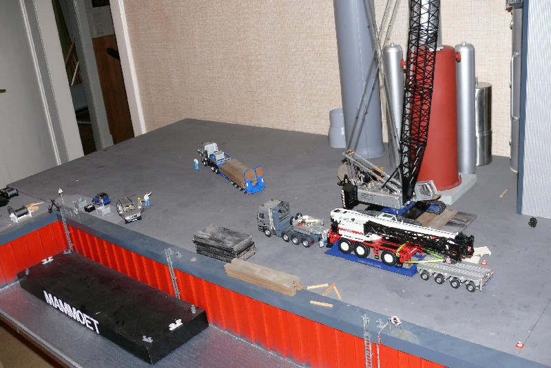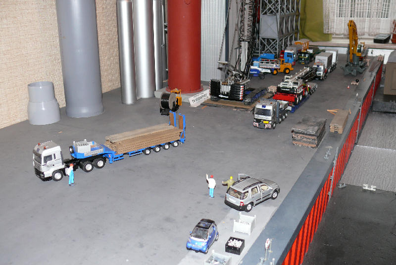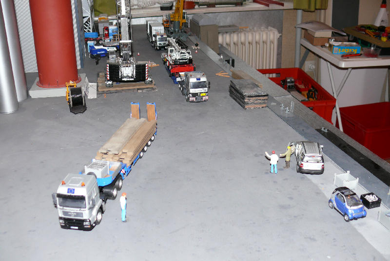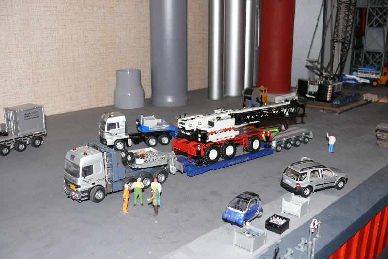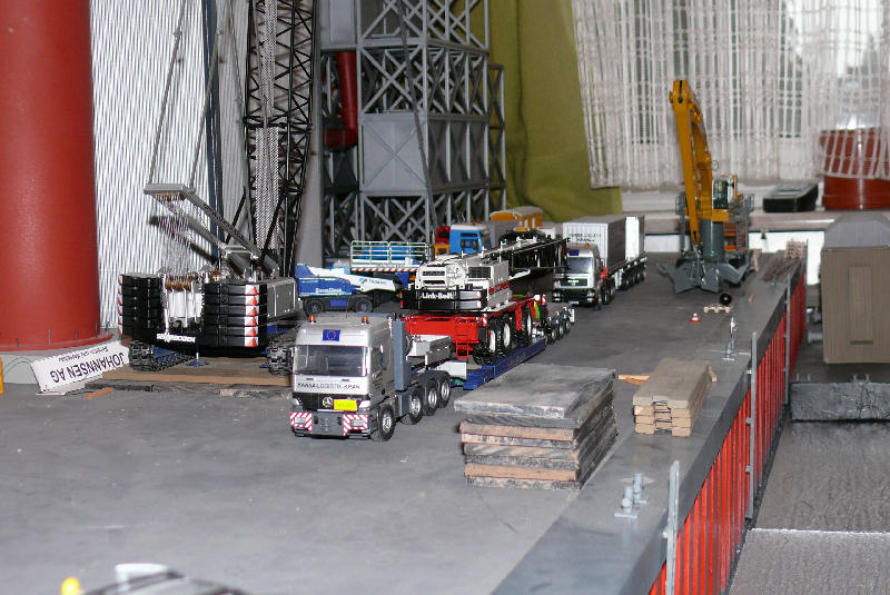 Das dritte Auto ist ein Ballasttrailer mit den Magazincontainern des Großkranes.