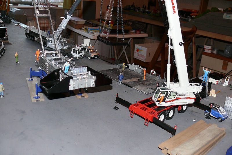 Damit das Grundgerät die Laufwerke aufnehmen kann, wird zunächst etwas Ballast am Oberwagen angebracht