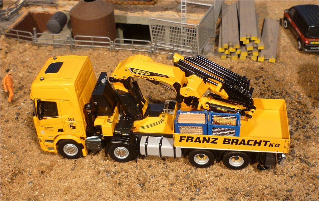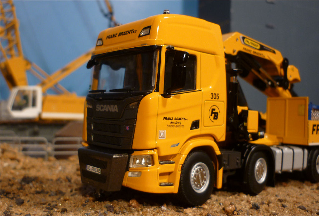 Im November 2025 erschien das Modell einer Scania R Highline 8x4 Ladekranzugmaschine in Farben von Franz Bracht KG.
