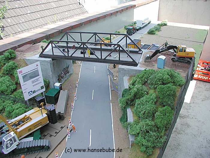 Die Gleise nebst Schotterbettung wurden im Bereich der Brücke bereits entfernt