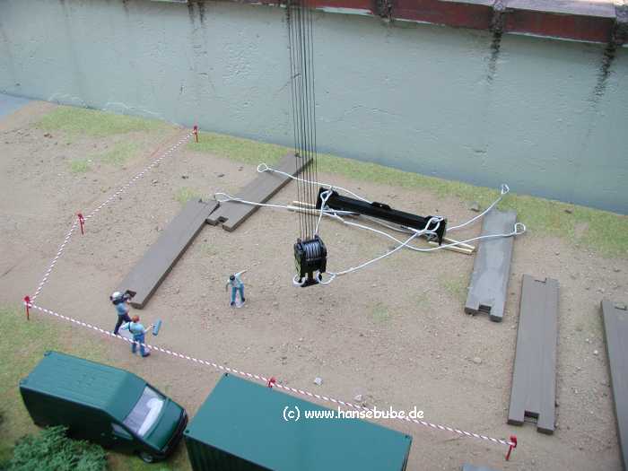 Das vorbereitete Anschlaggeschirr wird aufgenommen
