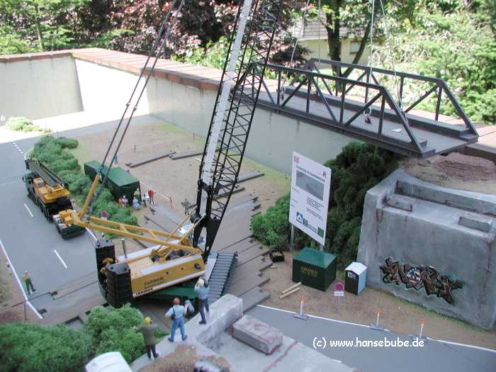 Derweil schwebt die alte Brücke ihrem Demontageplatz entgegen