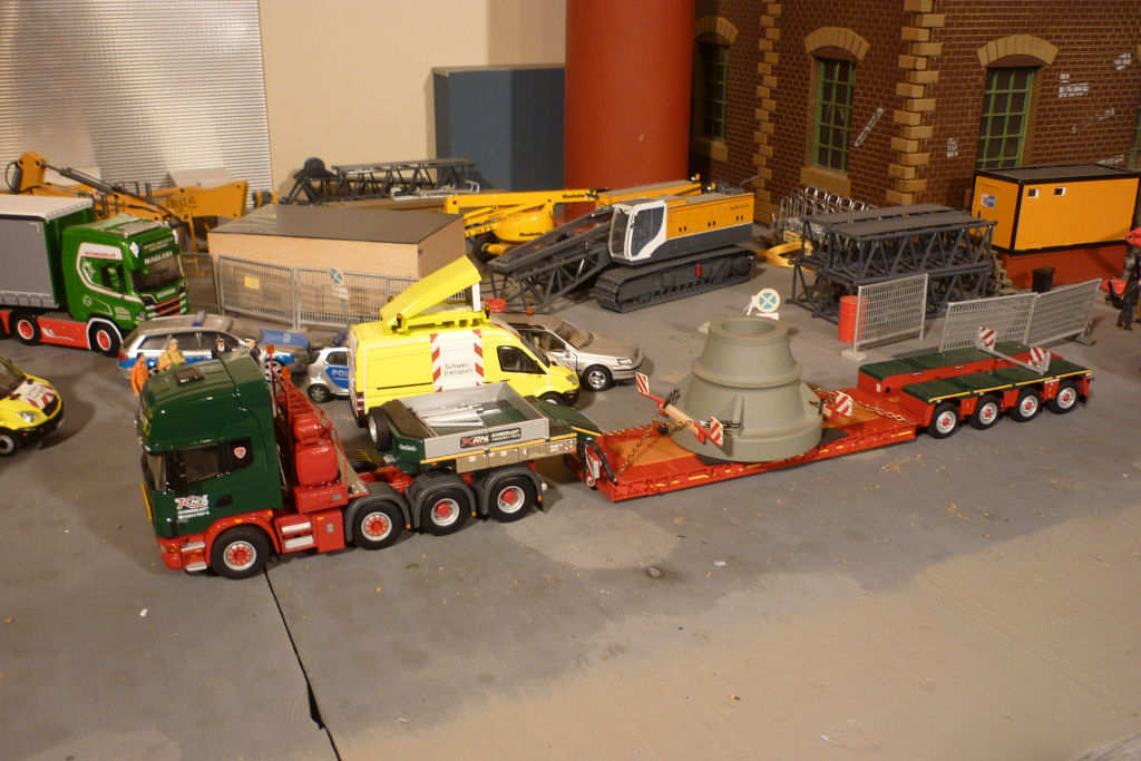 Scania 164 G 580 8x4 mit 4 achs Tiefbett und Mahlschüssel